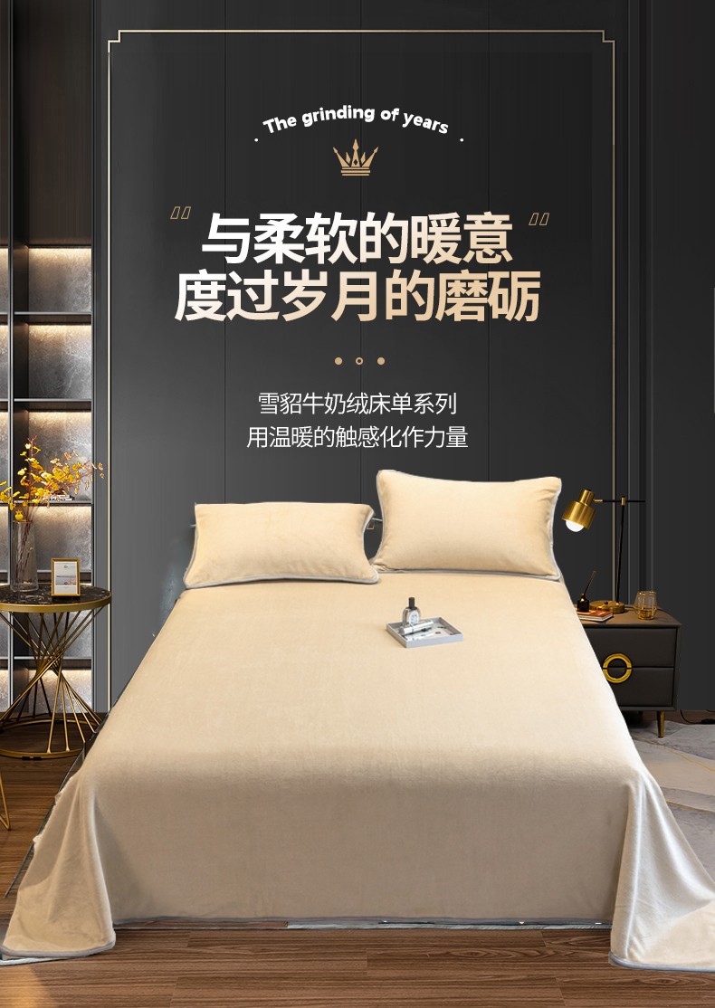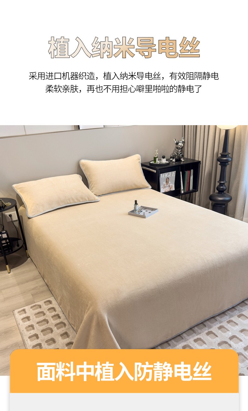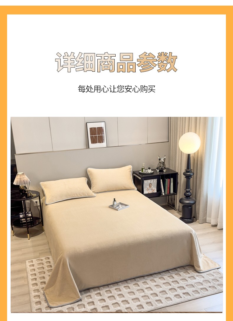 商品名称:(总)全季家居 2023新款纯色印花高克重抗静电包边牛奶绒床单-纯色