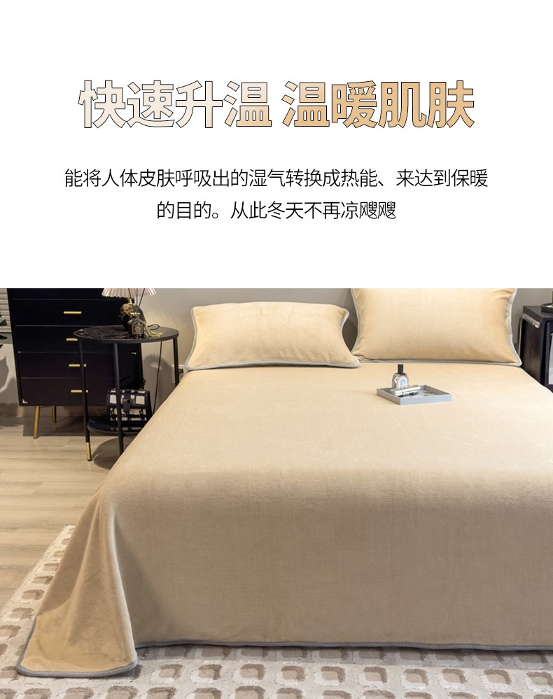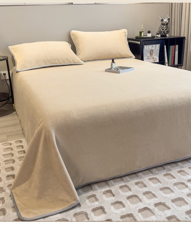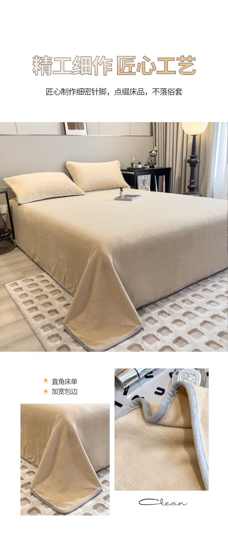 (总)全季家居 2023新款纯色印花高克重抗静电包边牛奶绒床单-纯色