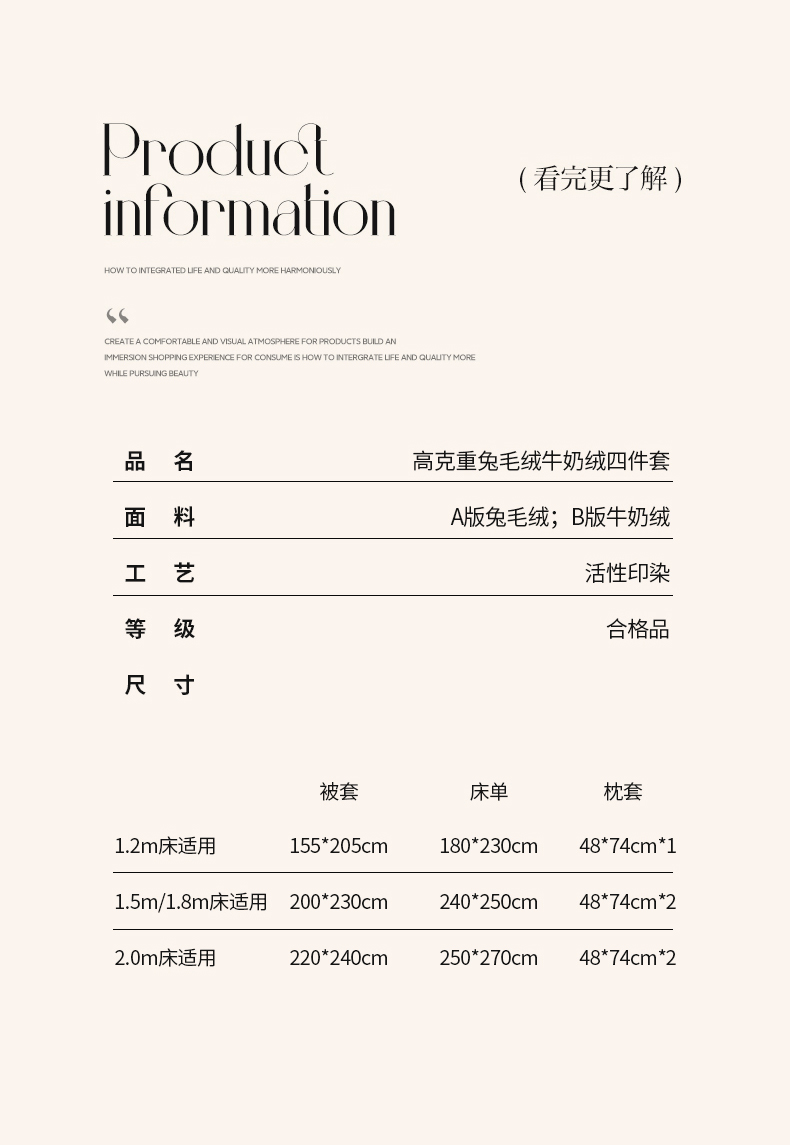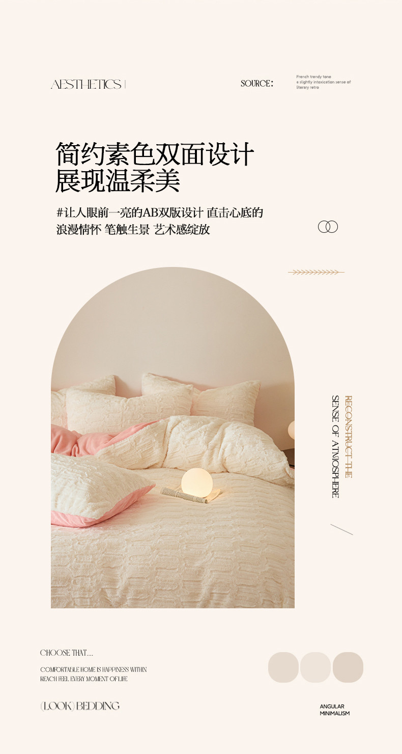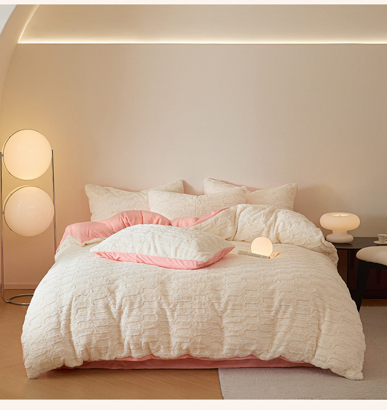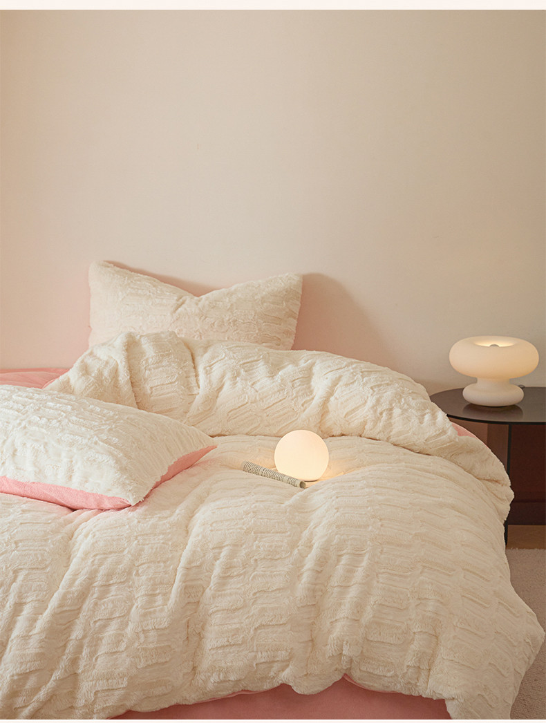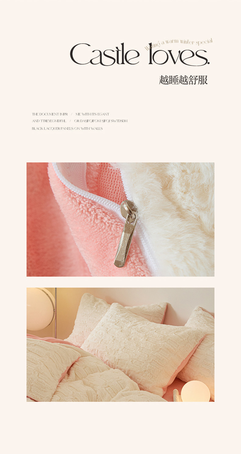 商品名称:沐棉 2023新款秋冬加厚保暖兔毛绒牛奶绒四件套 波浪-米拼粉