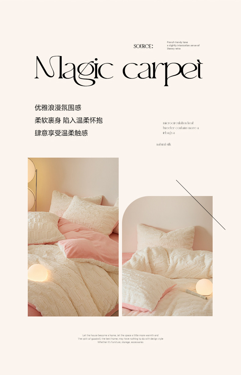 (总)沐棉家居 2025新款高克重立体雕花牛奶绒保暖四件套,曼苏雅,光影蝴蝶,花舞倩影,热带雨林,雅致