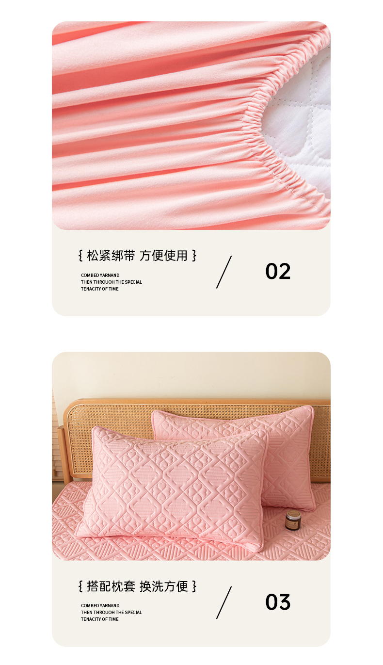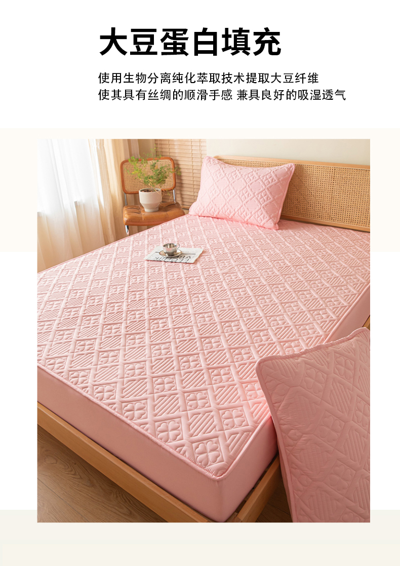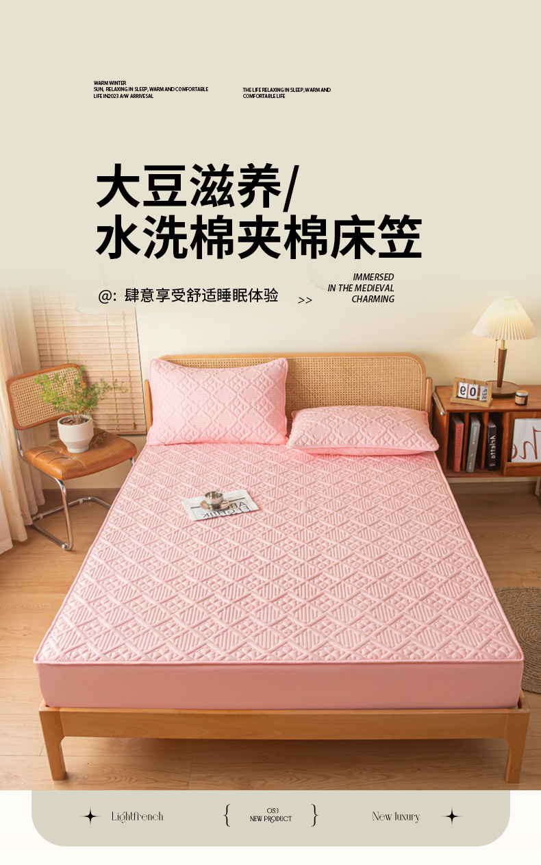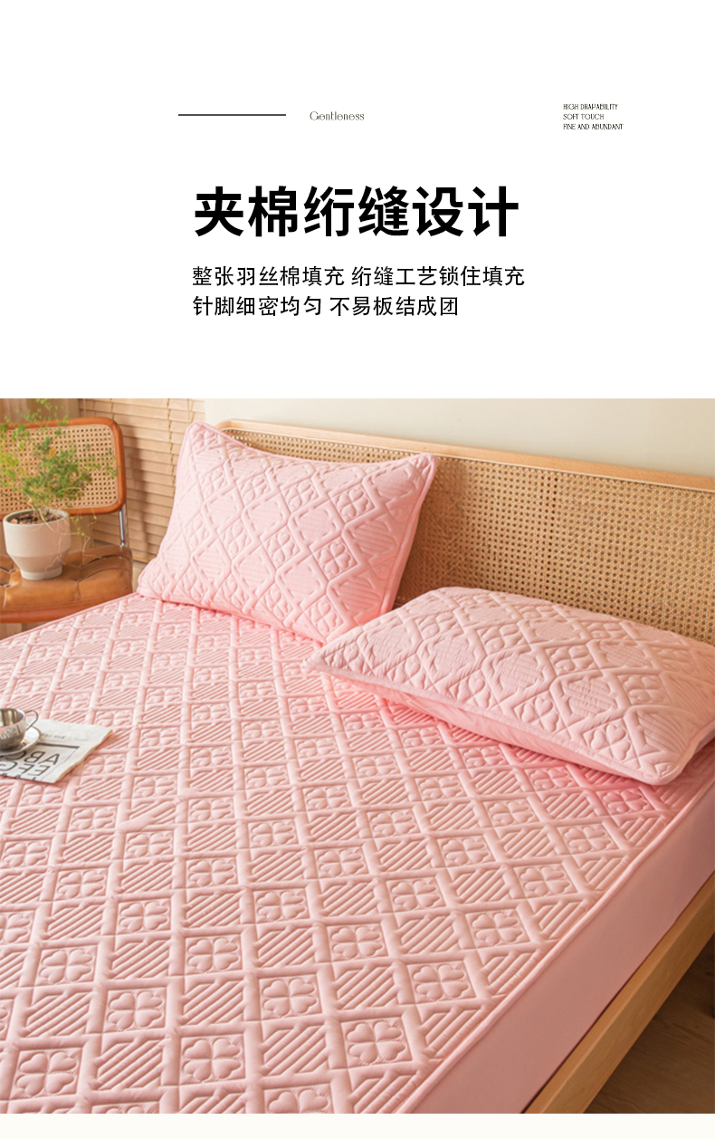 商品名称:吉祥家纺 2023新款水洗棉夹棉床笠 四叶草-粉