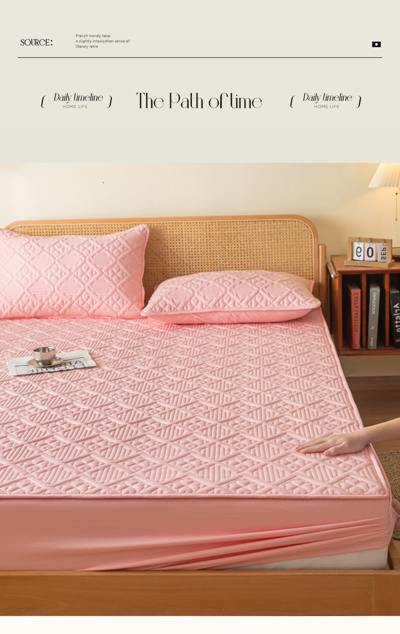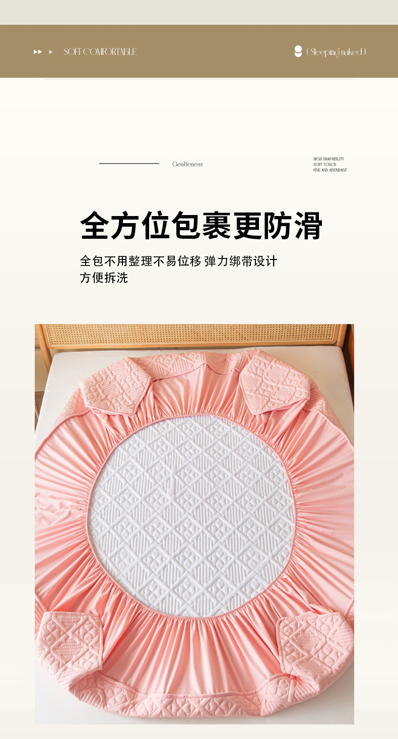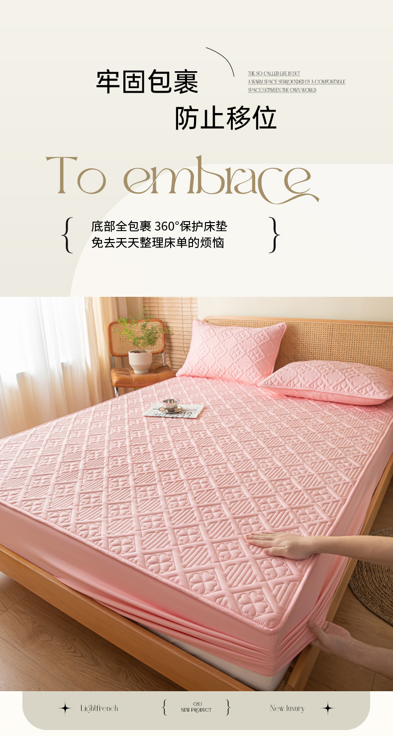 商品名称:吉祥家纺 2023新款水洗棉夹棉床笠 四叶草-粉
