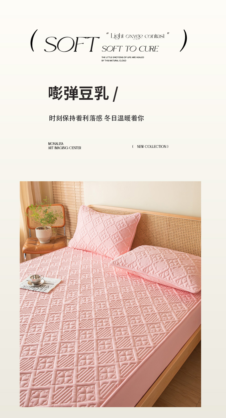 (总)吉祥家纺2023新款直播爆款水洗棉大豆纤维夹棉床笠-朵系列,粉朵,黄朵,灰朵,蓝朵,绿朵