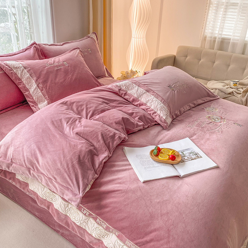 (总)可以家居 2025新款高克重全消光超细旦奶芙云绒四件套-玛利亚系列-莱卡芙,贵族粉,清雅蓝,伯爵绿,优雅紫,粉豆沙
