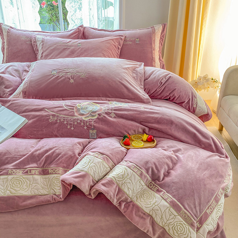 可以家居 2023新款全消光婴儿绒牛奶绒刺绣四件套-恋语 恋语-紫