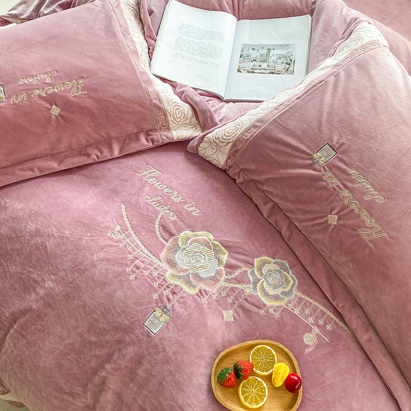 商品名称:可以家居 2023新款全消光婴儿绒牛奶绒刺绣四件套-恋语 恋语-紫