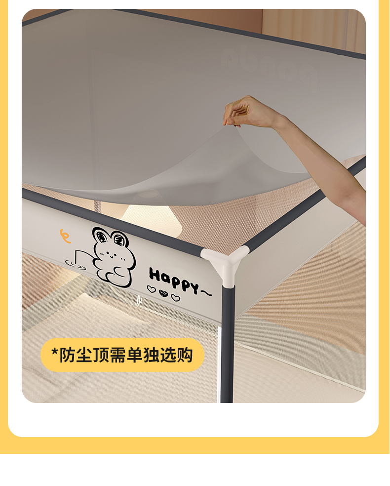 当前位置: 91家纺网 > 商品网购 > 床上用品 > 蚊帐 > 坐床式蚊帐 > 佳梦家纺 2024新款方顶坐床蚊帐系列 卡通系列 happy兔 - 灰