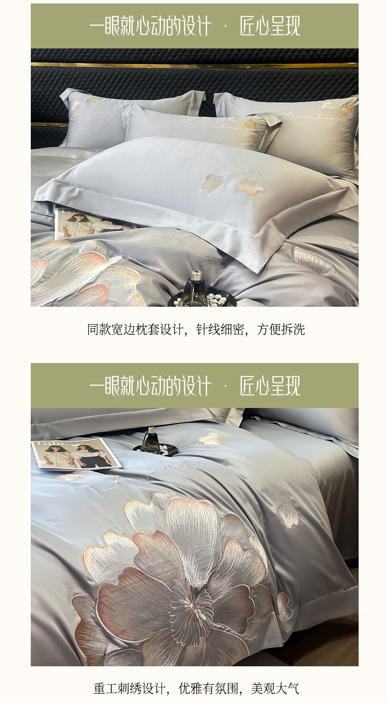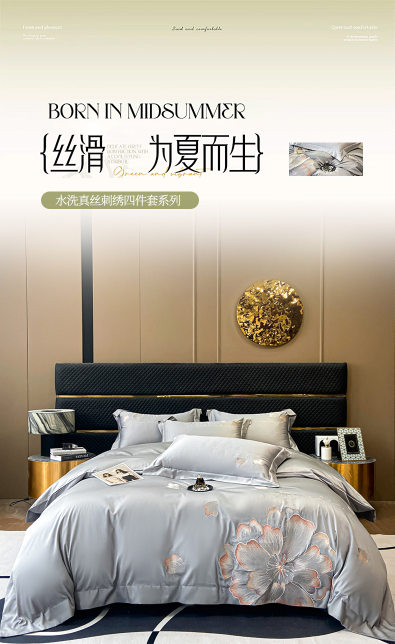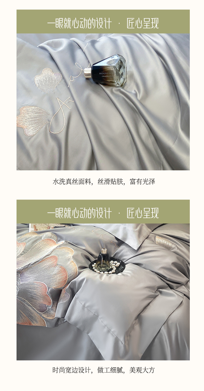 商品名称:狂想家 2025新款水洗真丝轻奢款系列四件套 初夏_灰