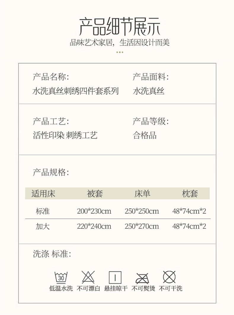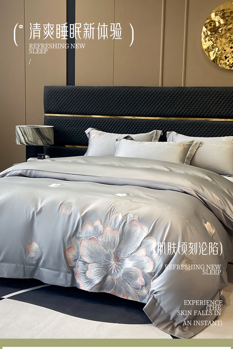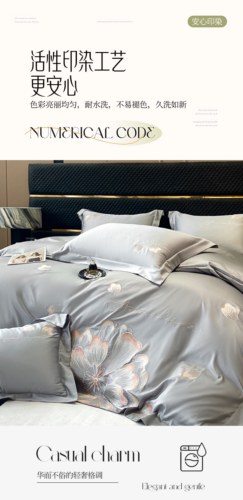 商品名称:狂想家 2025新款水洗真丝轻奢款系列四件套 初夏_灰