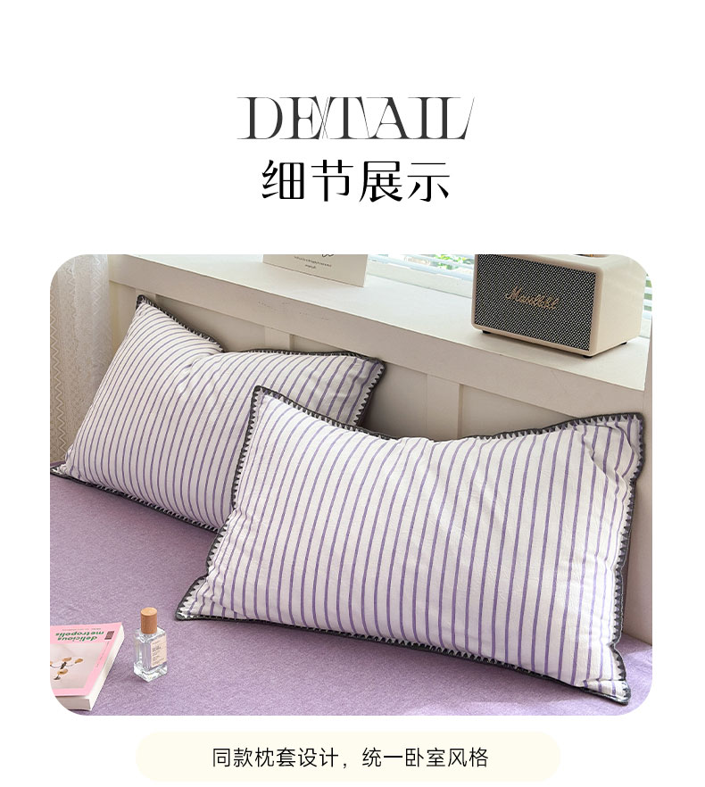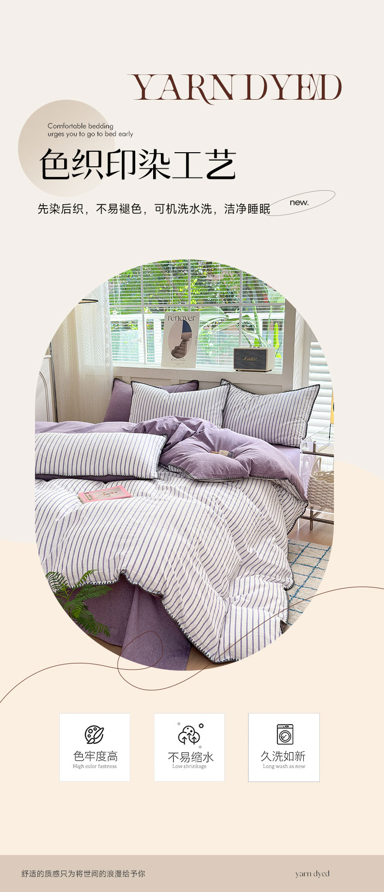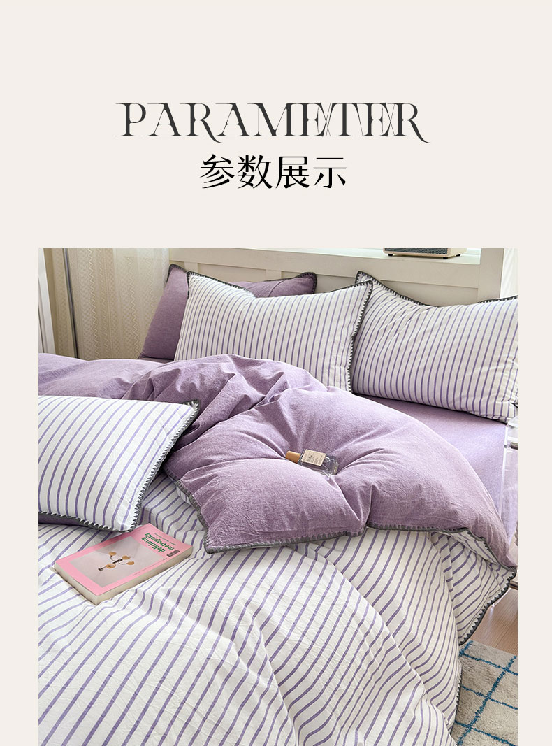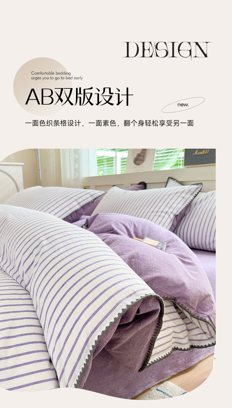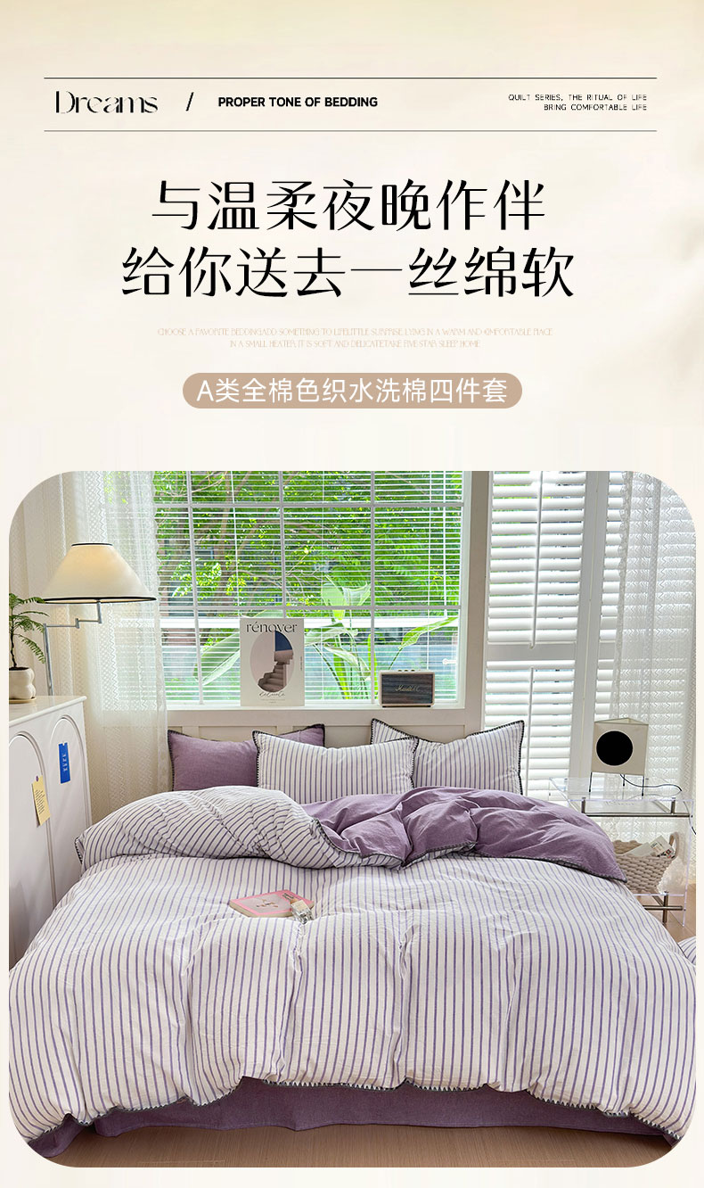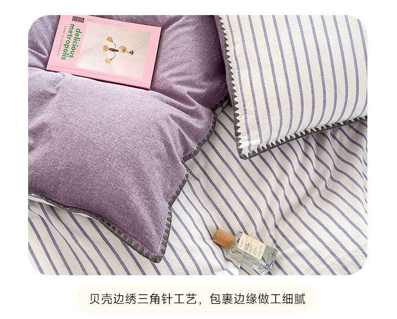 当前位置: 91家纺网 > 商品网购 > 床品套件 > 四件套 > 全棉普通四件套 > 晚依家纺 2024新款全棉色织水洗棉贝壳边绣三角针工艺四件套 诺言-紫