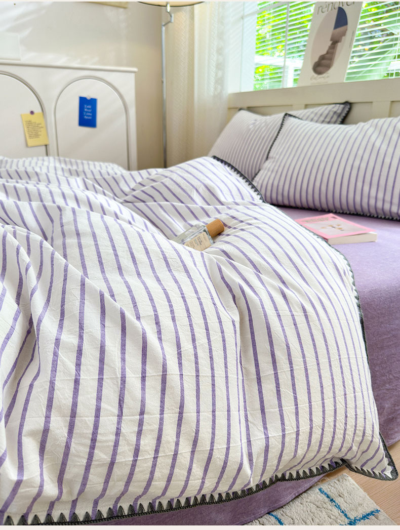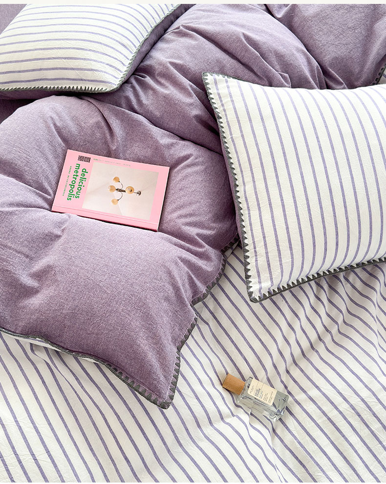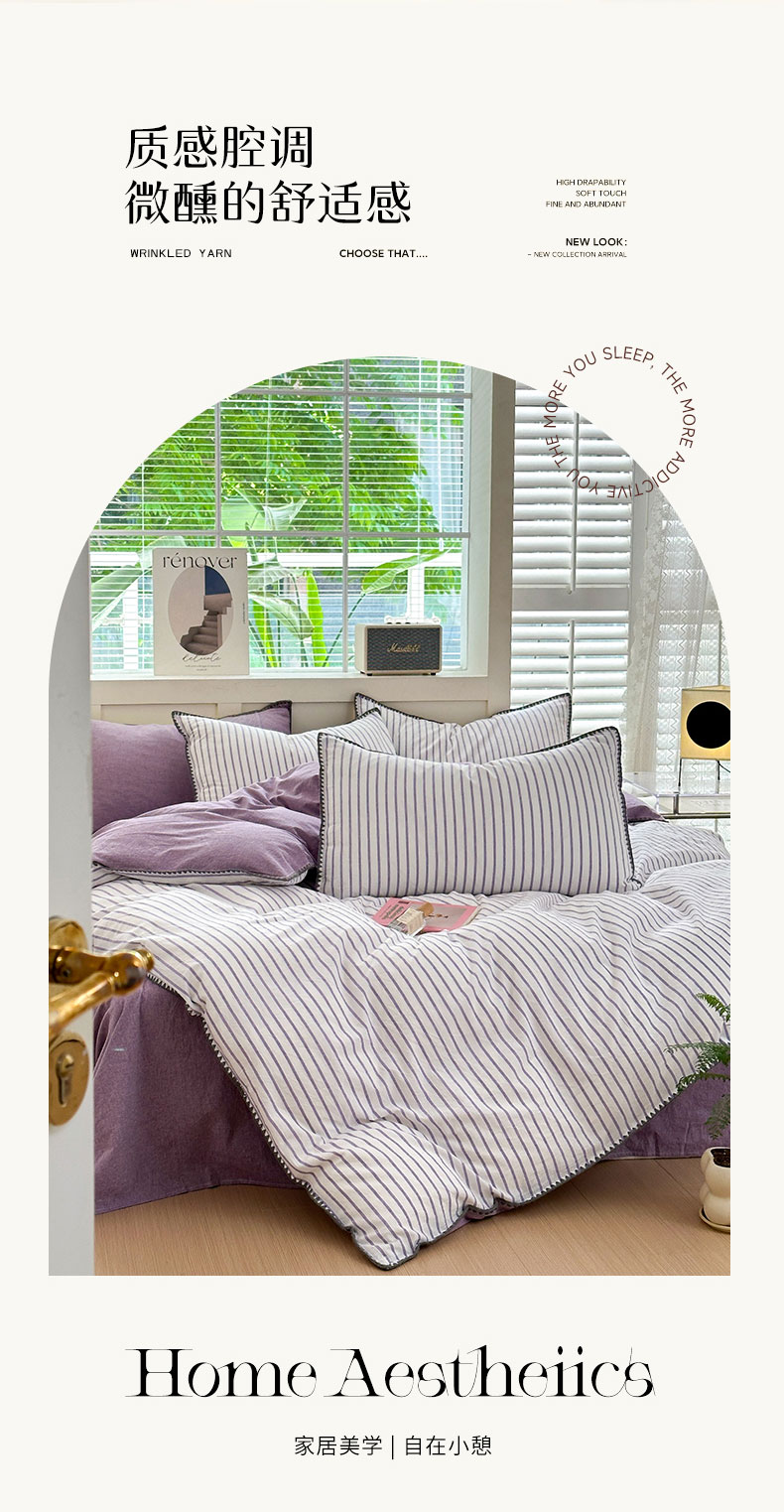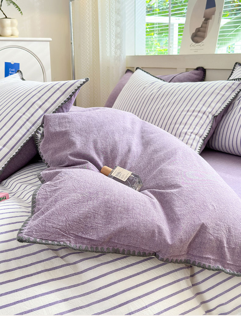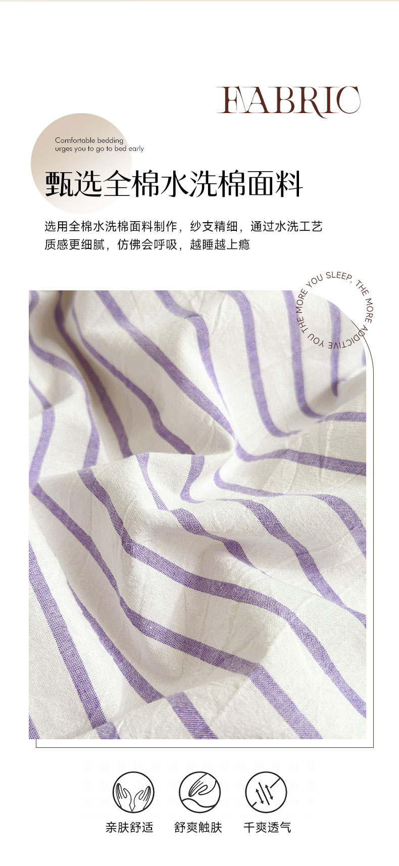 当前位置: 91家纺网 > 商品网购 > 床品套件 > 四件套 > 全棉普通四件套 > 晚依家纺 2024新款全棉色织水洗棉贝壳边绣三角针工艺四件套 诺言-紫
