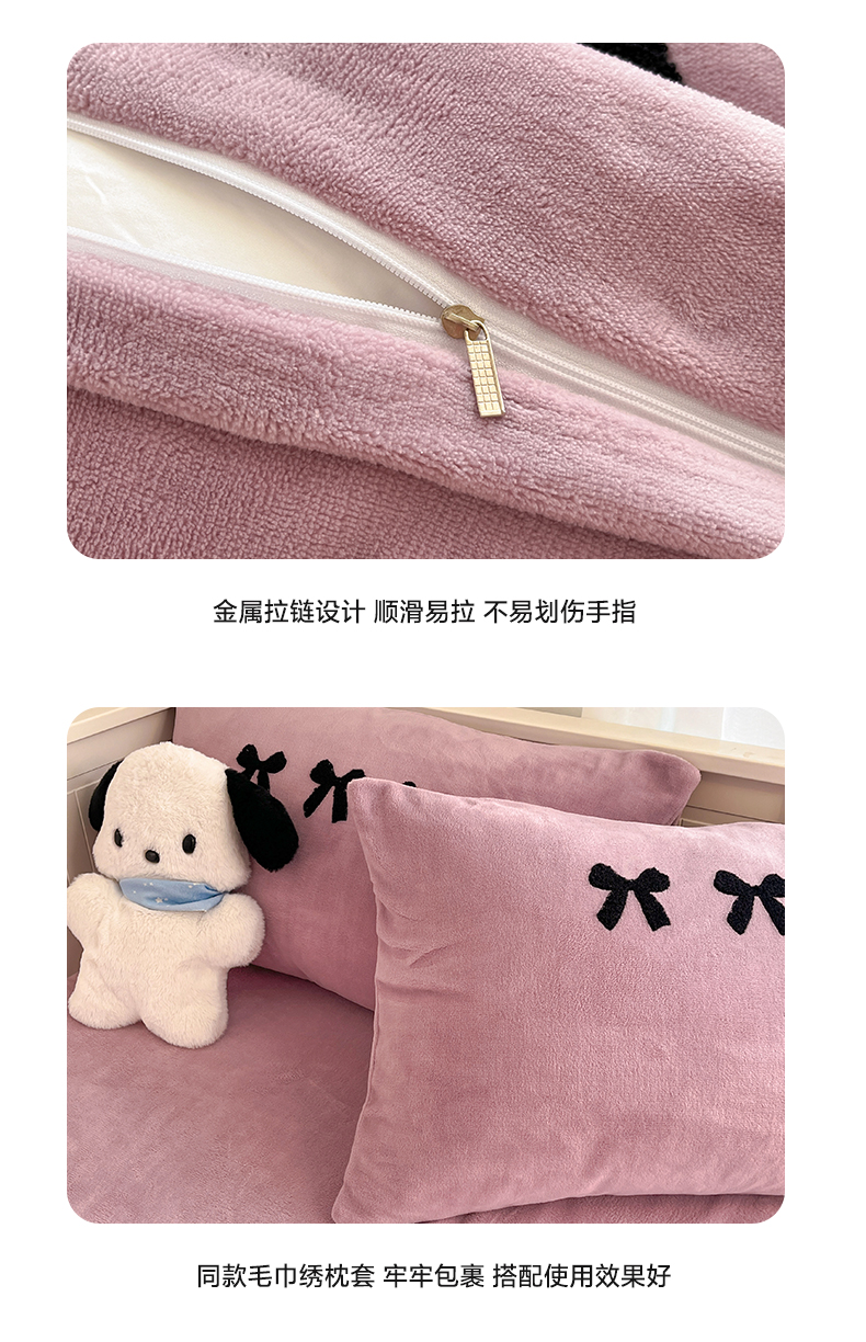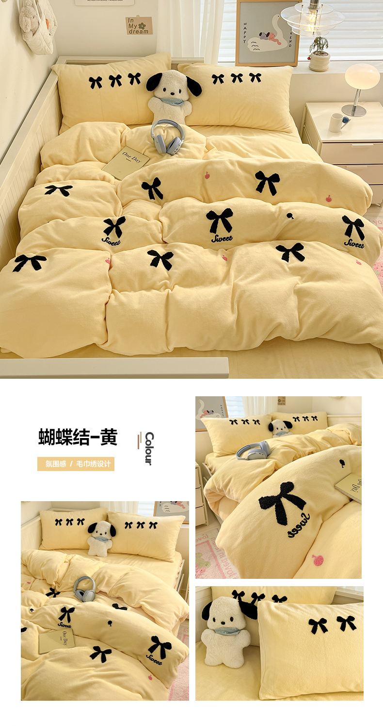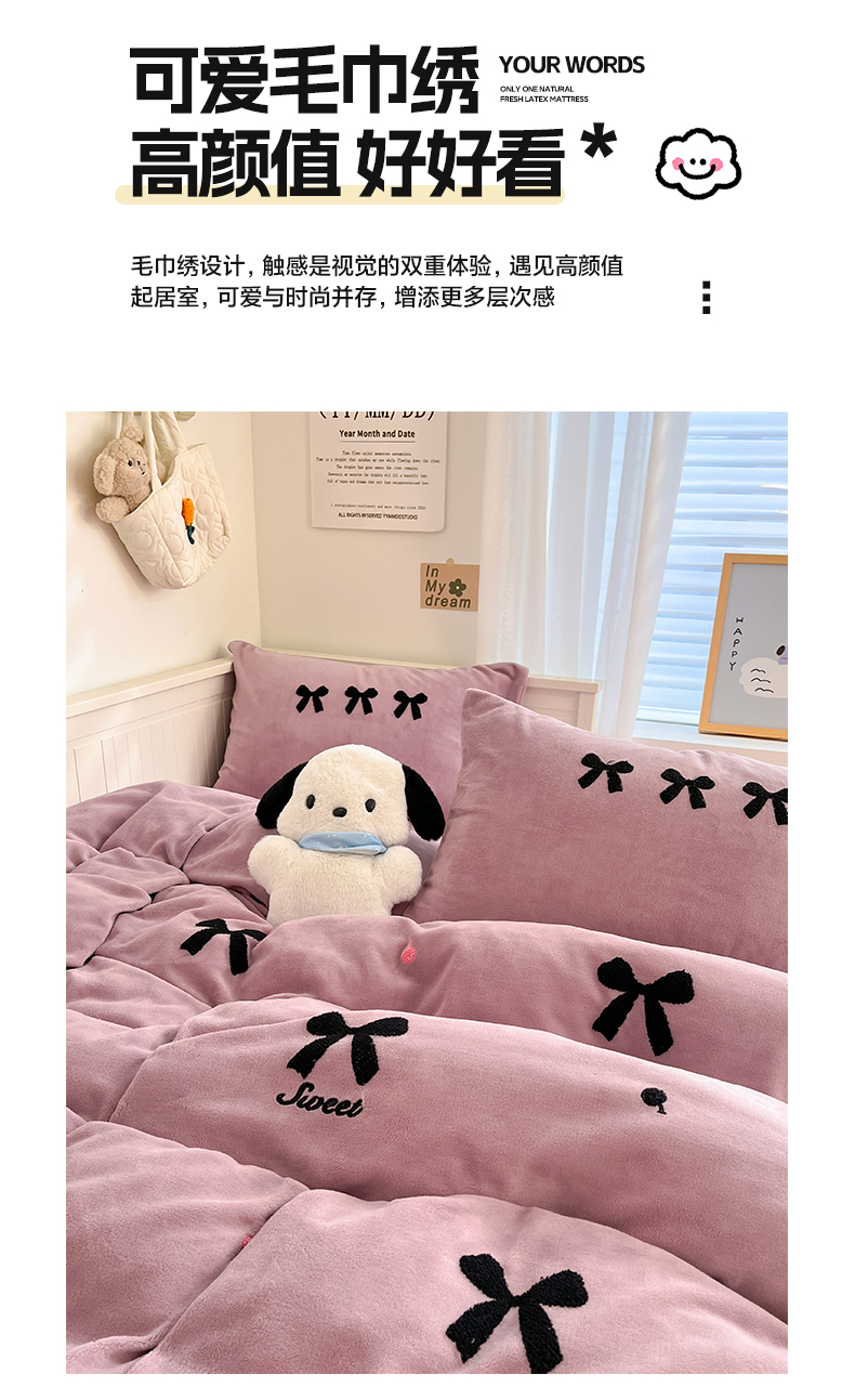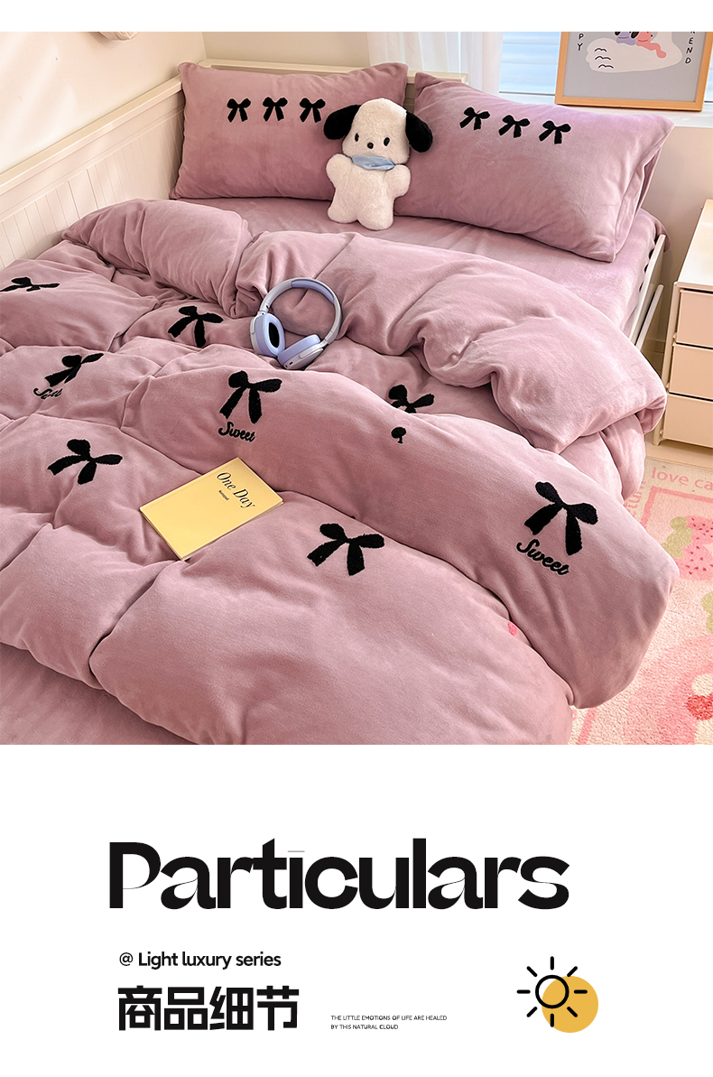 商品名称:亨通家纺 2024新款牛奶绒毛巾绣四件套系列-蝴蝶结 蝴蝶结-紫