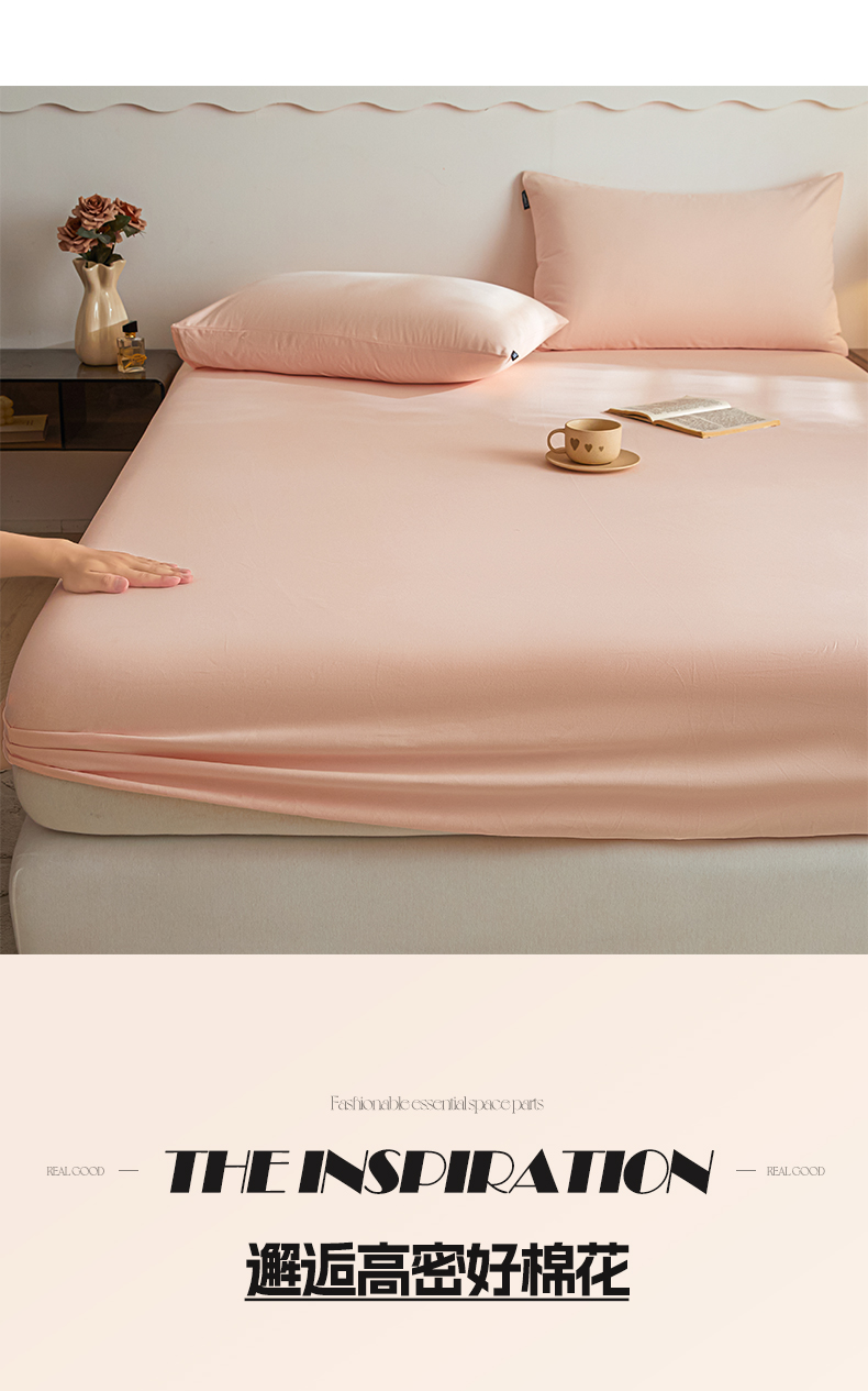 涵宸家纺 2024新款全棉磨毛四件套纯厚系列-单床笠 a樱花粉