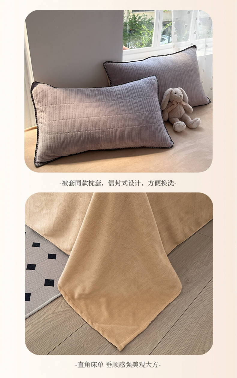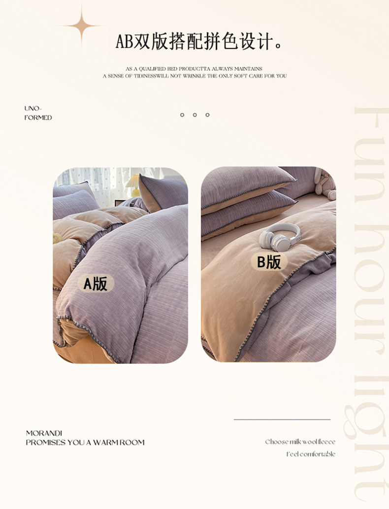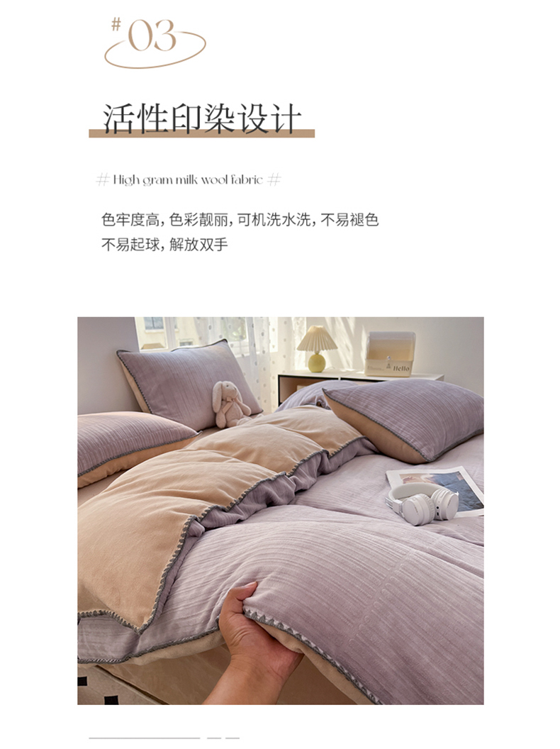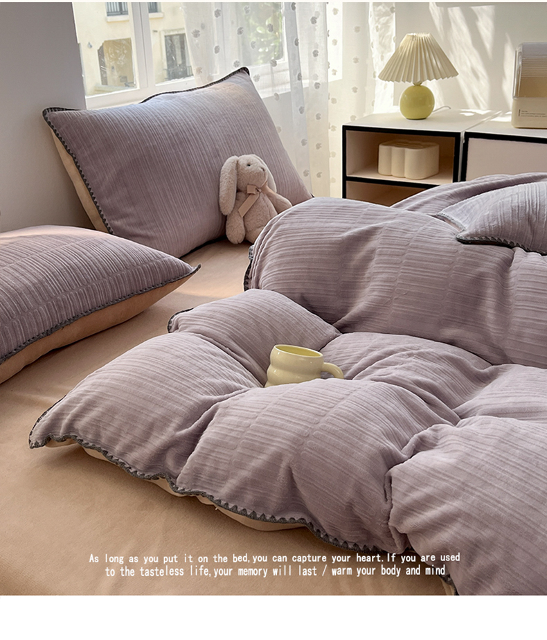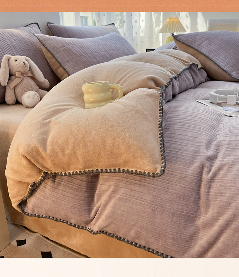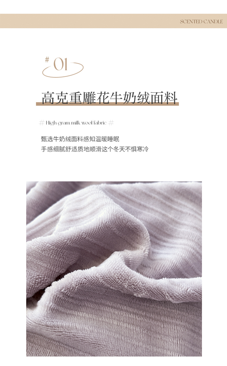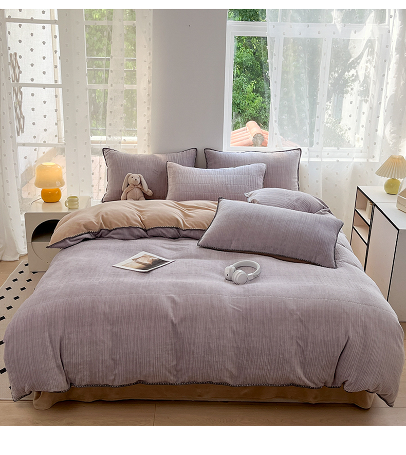 当前位置: 91家纺网 > 商品网购 > 床品套件 > 四件套 > 牛奶绒四件套 > 晚依家纺 2024新款230g纯色立体雕花牛奶绒四件套贝壳边加厚保暖定制定做 香榭格调-紫