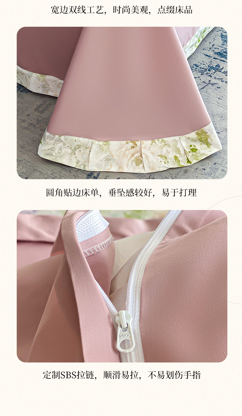 (总)娇逸家居 2025新款高克重A类数码印花牛奶绒双拼边款四件套,采薇灰,扶桑,浅影,秋灵粉,秋灵黄,秋灵绿,舜华粉,采薇米,舜华绿,仙客,栩蝶,璎珞,玉树,芸芙