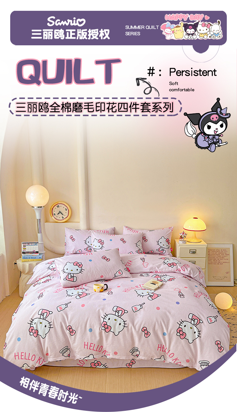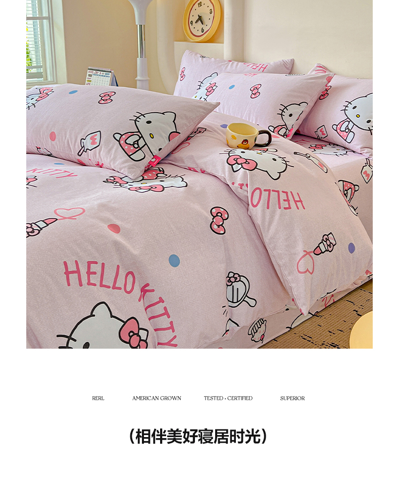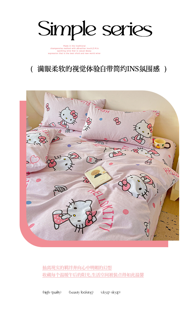 当前位置: 91家纺网 > 商品网购 > 床品套件 > 四件套 > 普通磨毛四件套 > 朵希曼 2026新款三丽鸥全棉磨毛系列四件套 优雅 kitty
