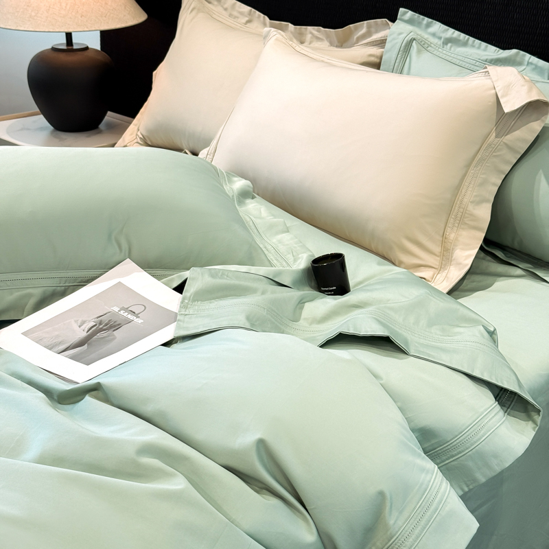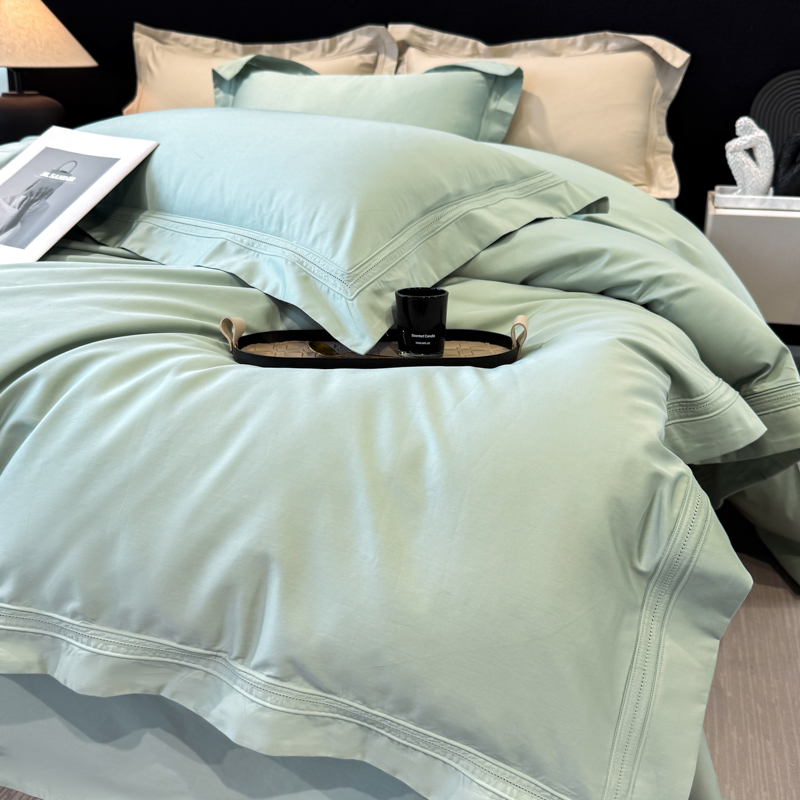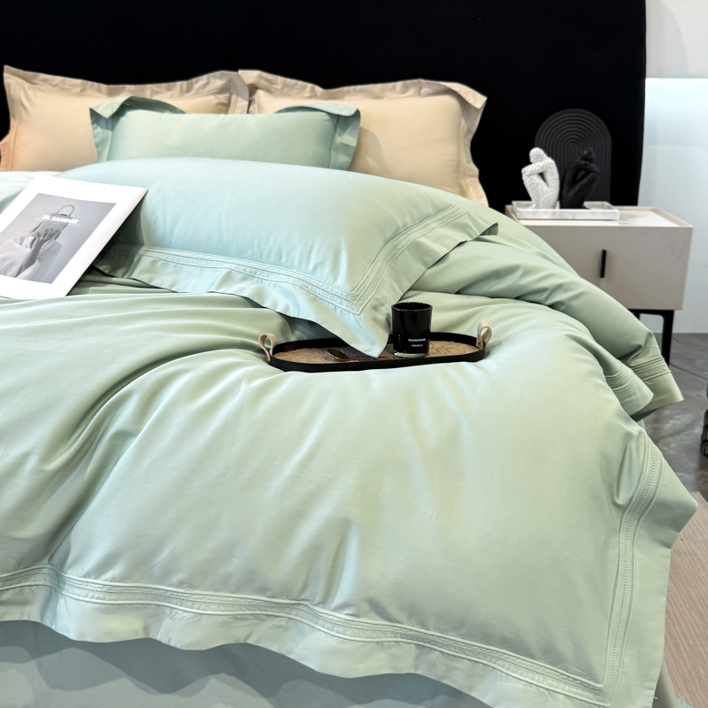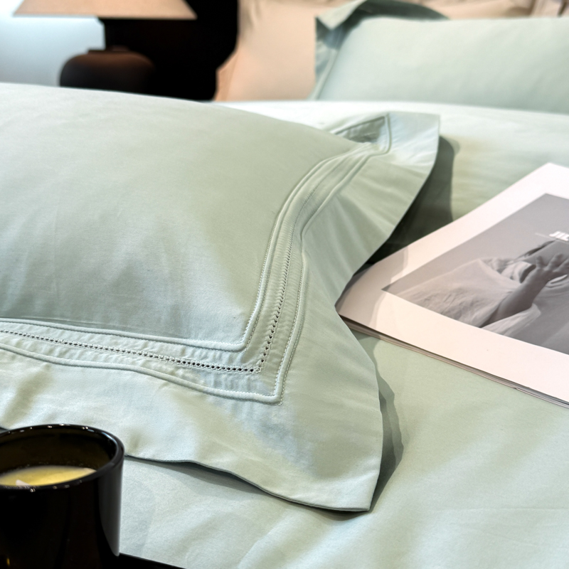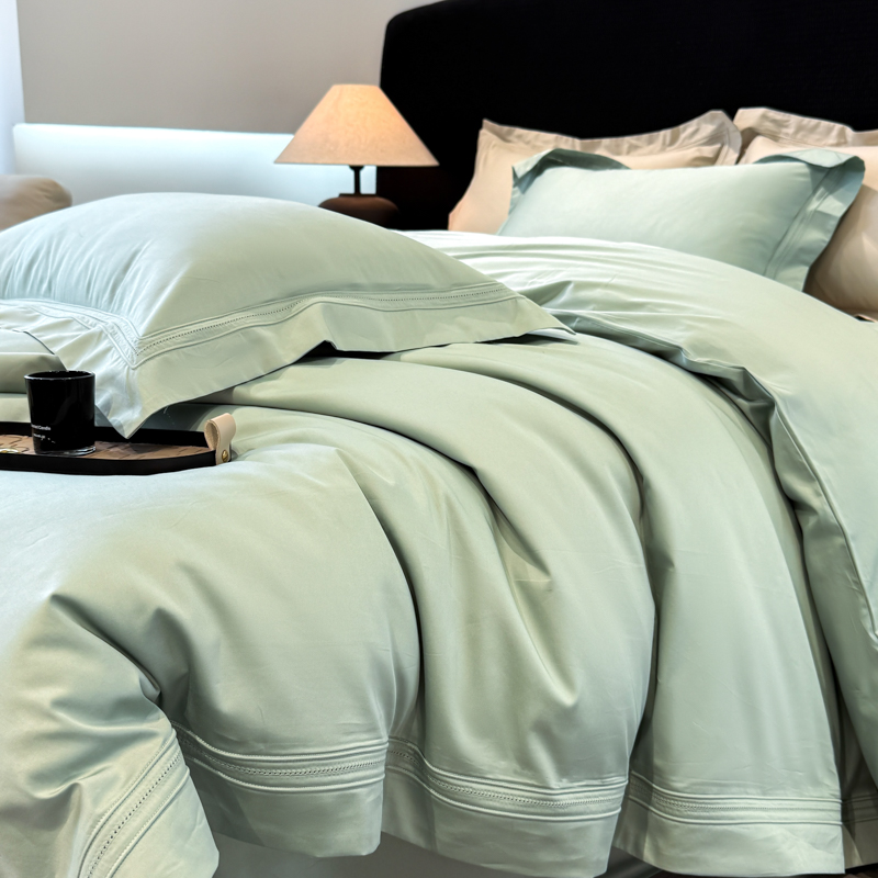 21度C 2025春夏新款50双股100S长绒棉纯棉双埋线镂空四件套 水绿