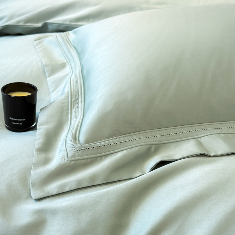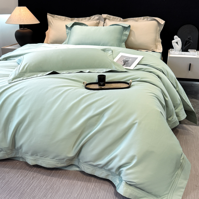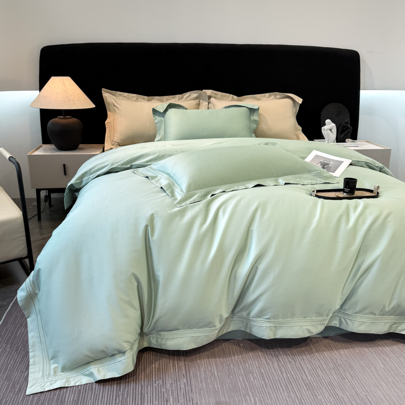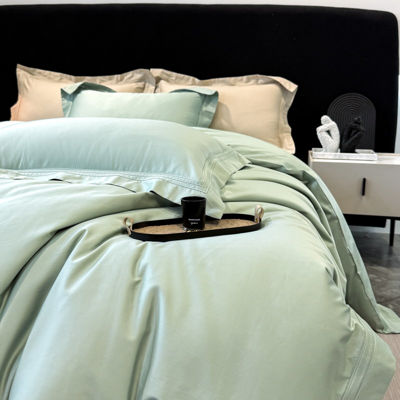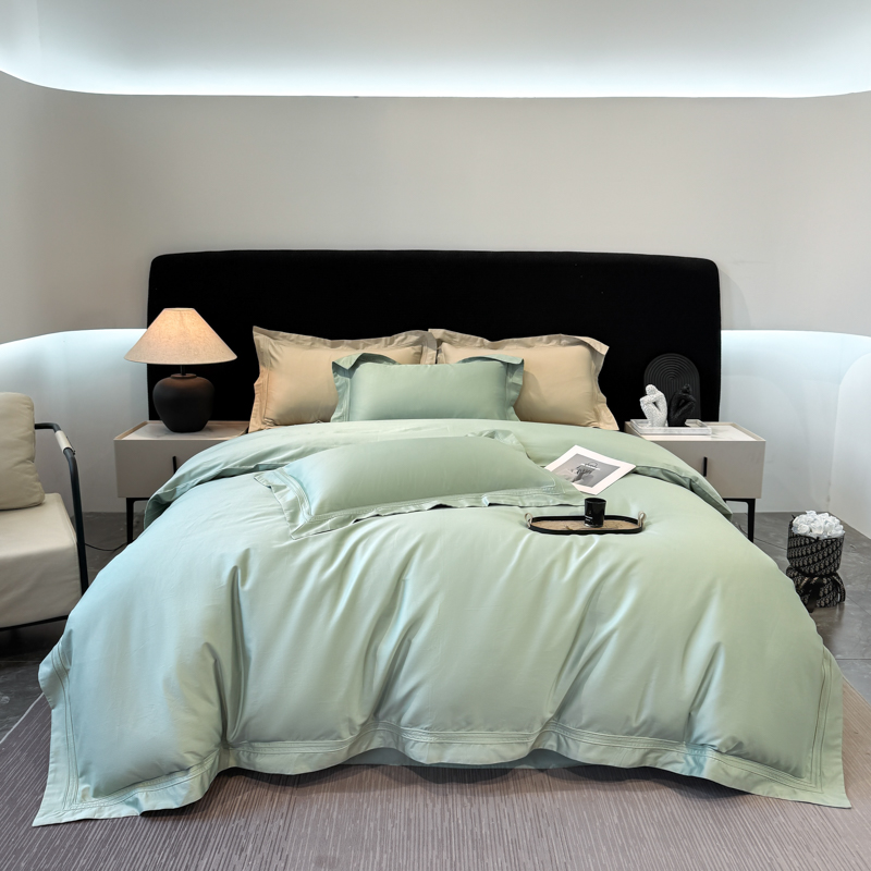 21度C 2025春夏新款50双股100S长绒棉纯棉双埋线镂空四件套 水绿