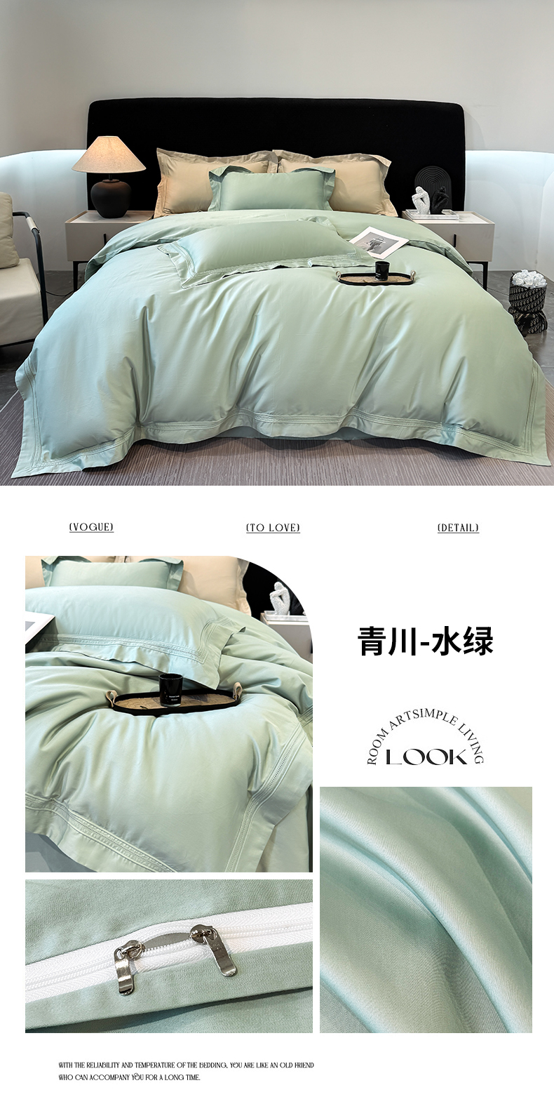 商品名称:21度C 2025春夏新款50双股100S长绒棉纯棉双埋线镂空四件套 水绿
