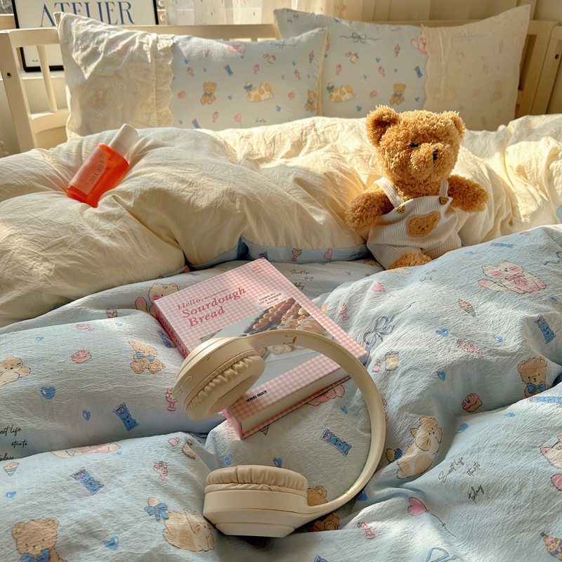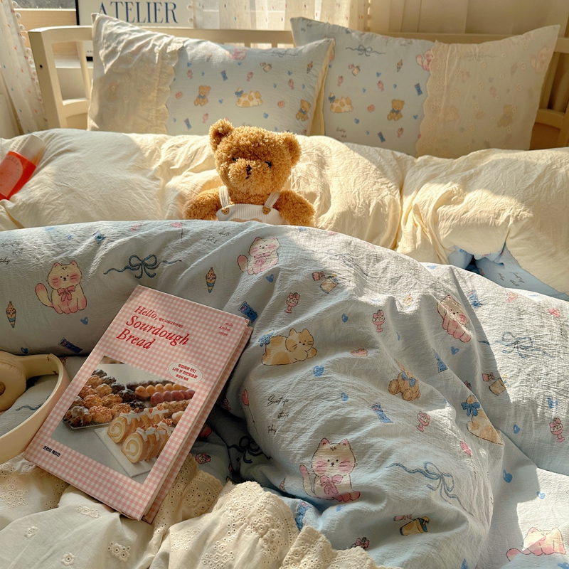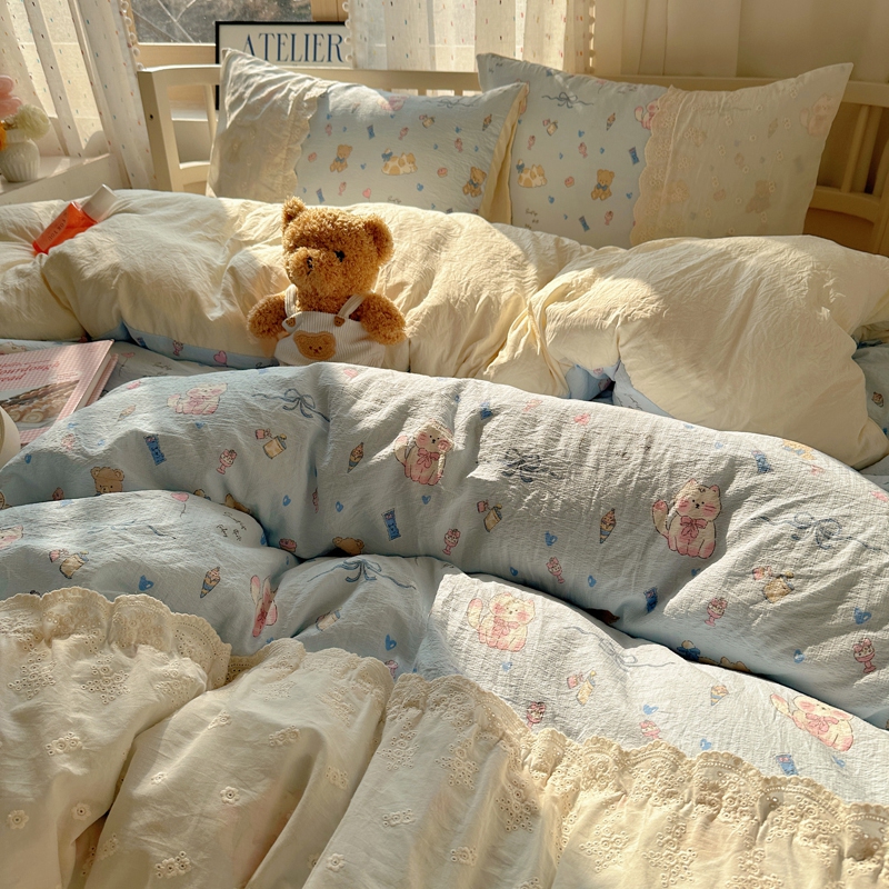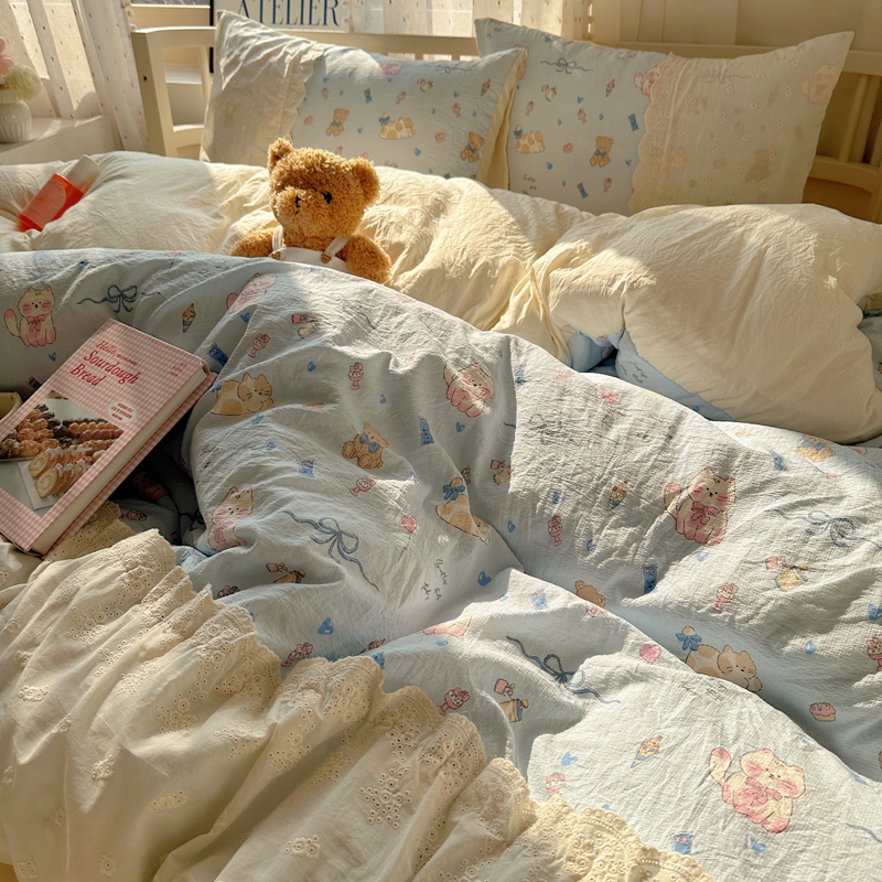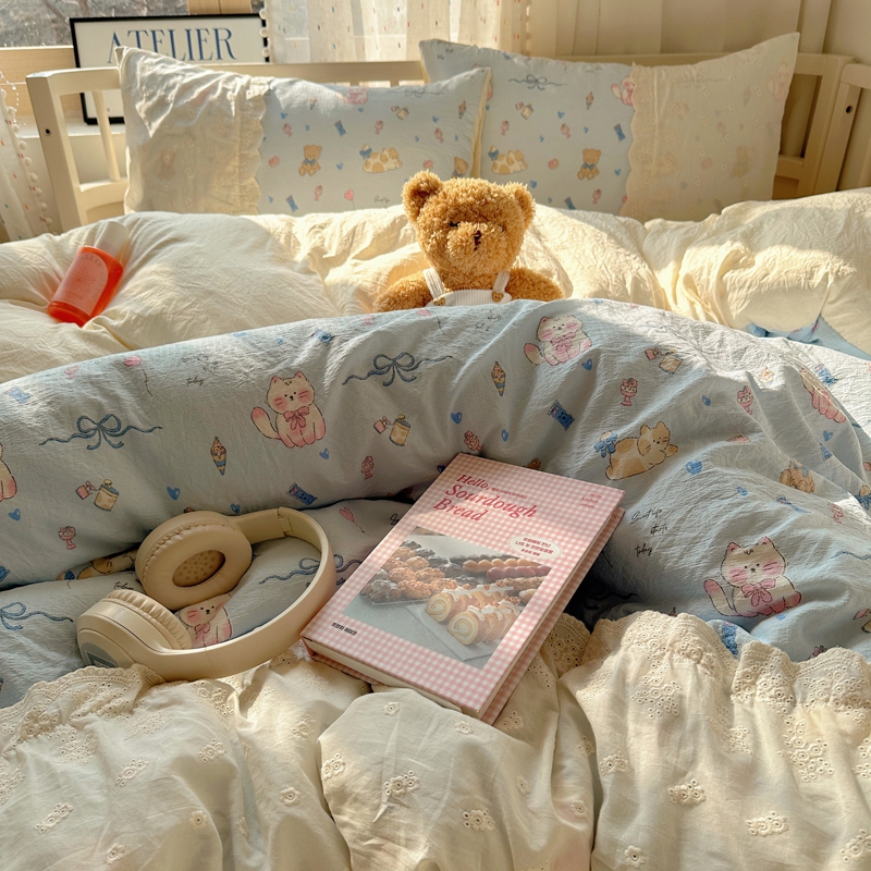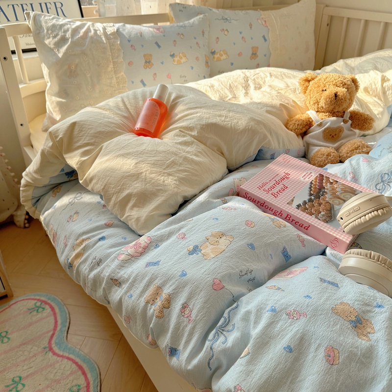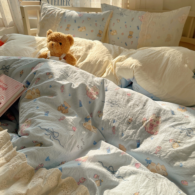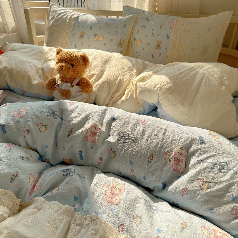 (总)顾里家纺 2026春夏新款ins韩风印花贝壳针双层纱四件套,啵啵蝴蝶结,啵啵猫咪,彩色啵啵,粉米兔,浆果梦,蓝条爱心,曲奇小熊,碎花兔熊,雾屿动物,小南瓜,星月童话,雪瑞纳仔,樱桃蝴蝶结,芋泥腊肠狗,栀夏小兔,治愈动物,治愈星星