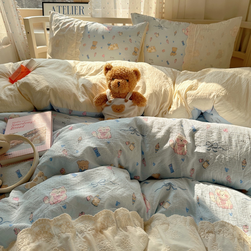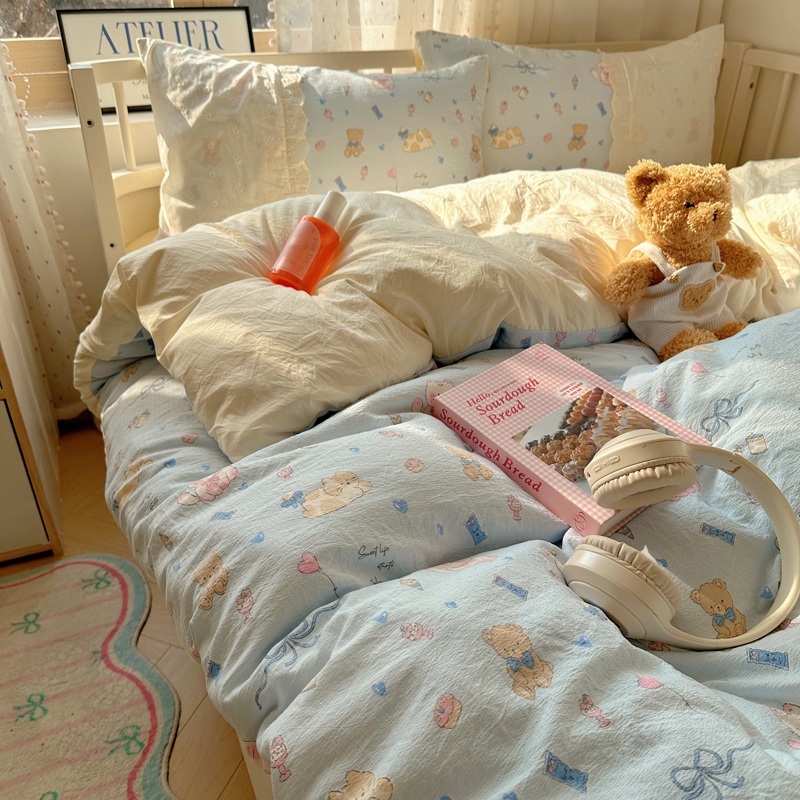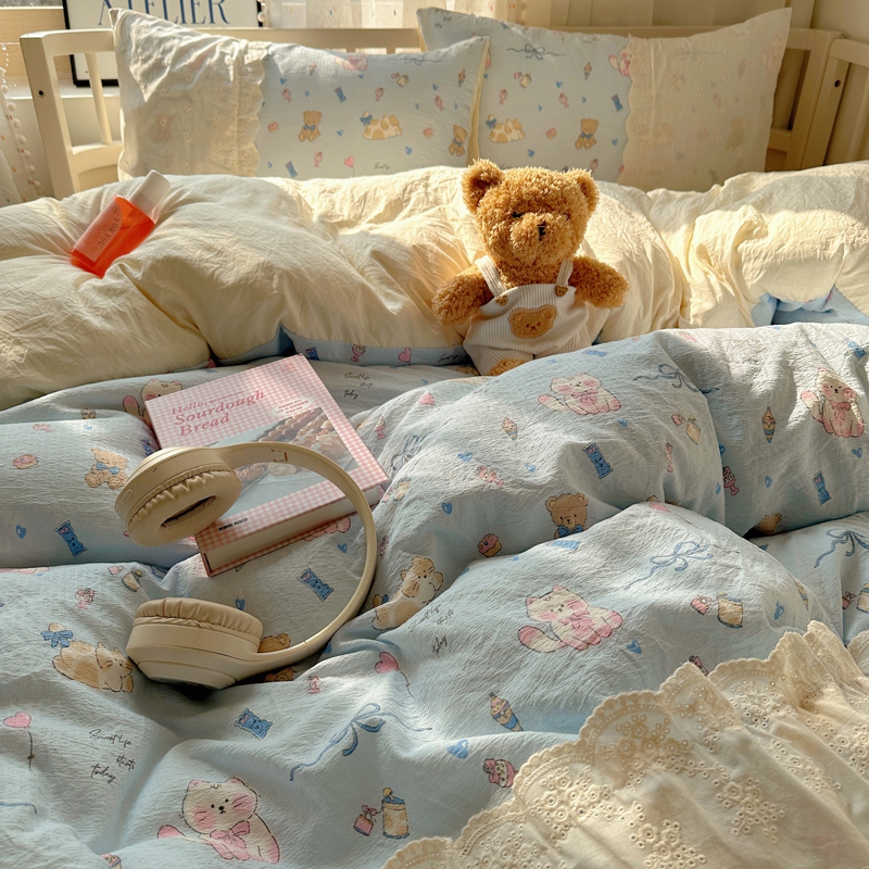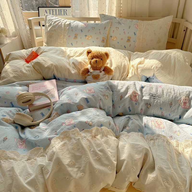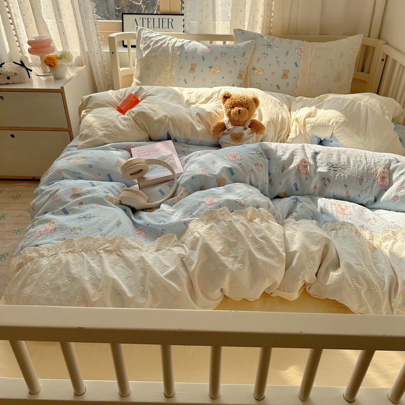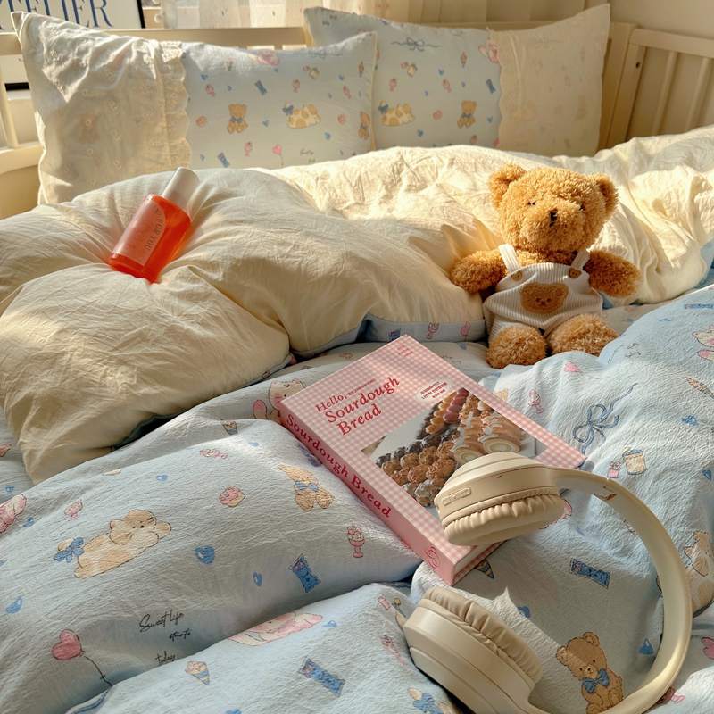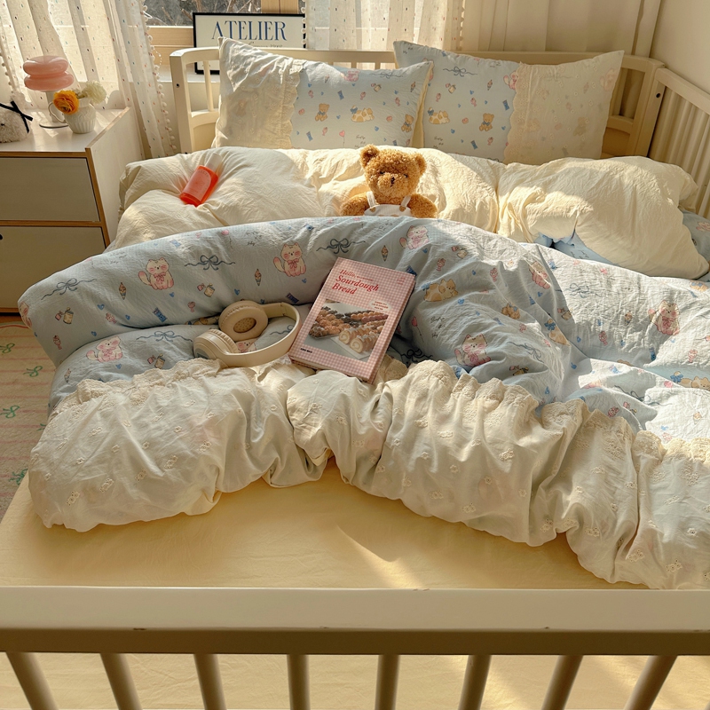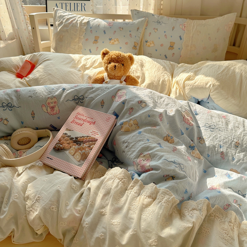 (总)顾里家纺 2026春夏新款ins韩风印花贝壳针双层纱四件套,啵啵蝴蝶结,啵啵猫咪,彩色啵啵,粉米兔,浆果梦,蓝条爱心,曲奇小熊,碎花兔熊,雾屿动物,小南瓜,星月童话,雪瑞纳仔,樱桃蝴蝶结,芋泥腊肠狗,栀夏小兔,治愈动物,治愈星星