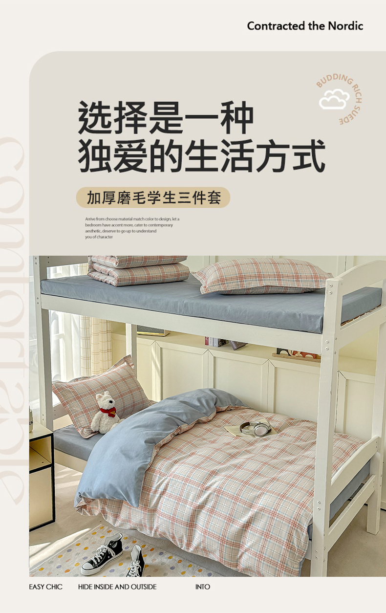 当前位置: 91家纺网 > 商品网购 > 床品套件 > 三件套 > 鑫宇 2025新款磨毛130g加厚学生宿舍三件套床单床笠款学生上下铺六件套 奇遇