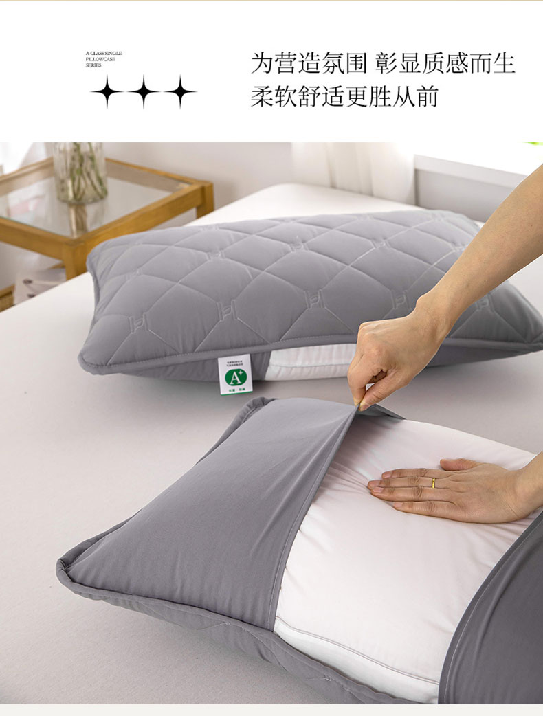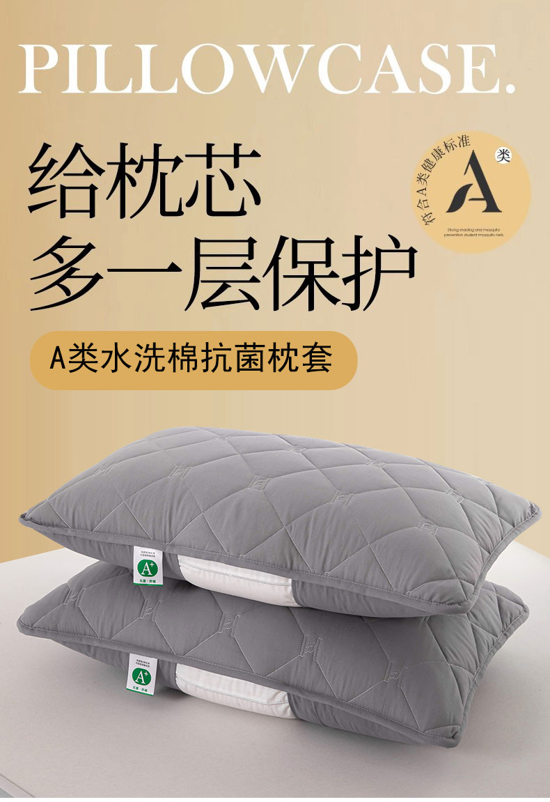 (总)安逸恋 2025新款A类水洗棉大豆夹棉枕套48*74cm出口跨境,灰色,米白,咖色