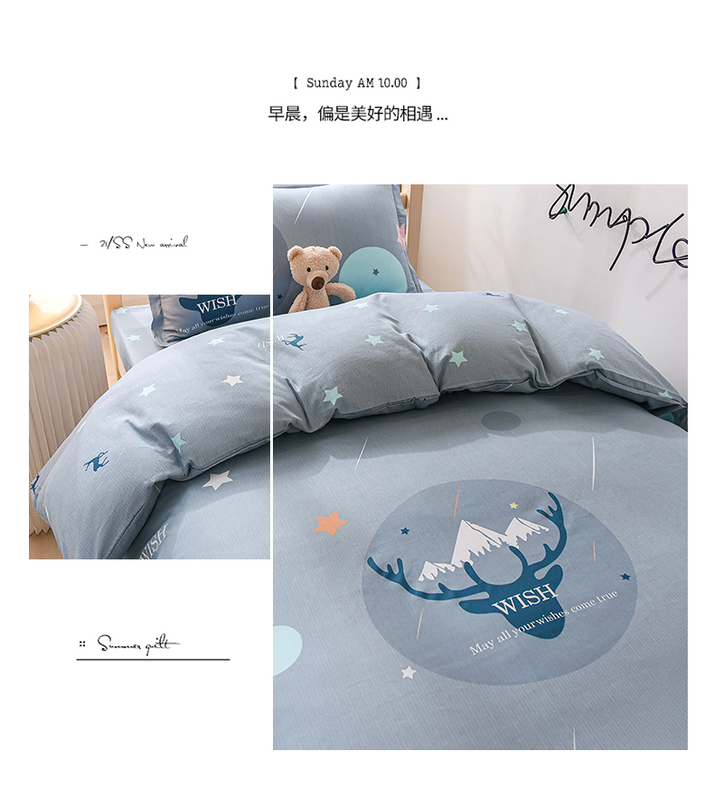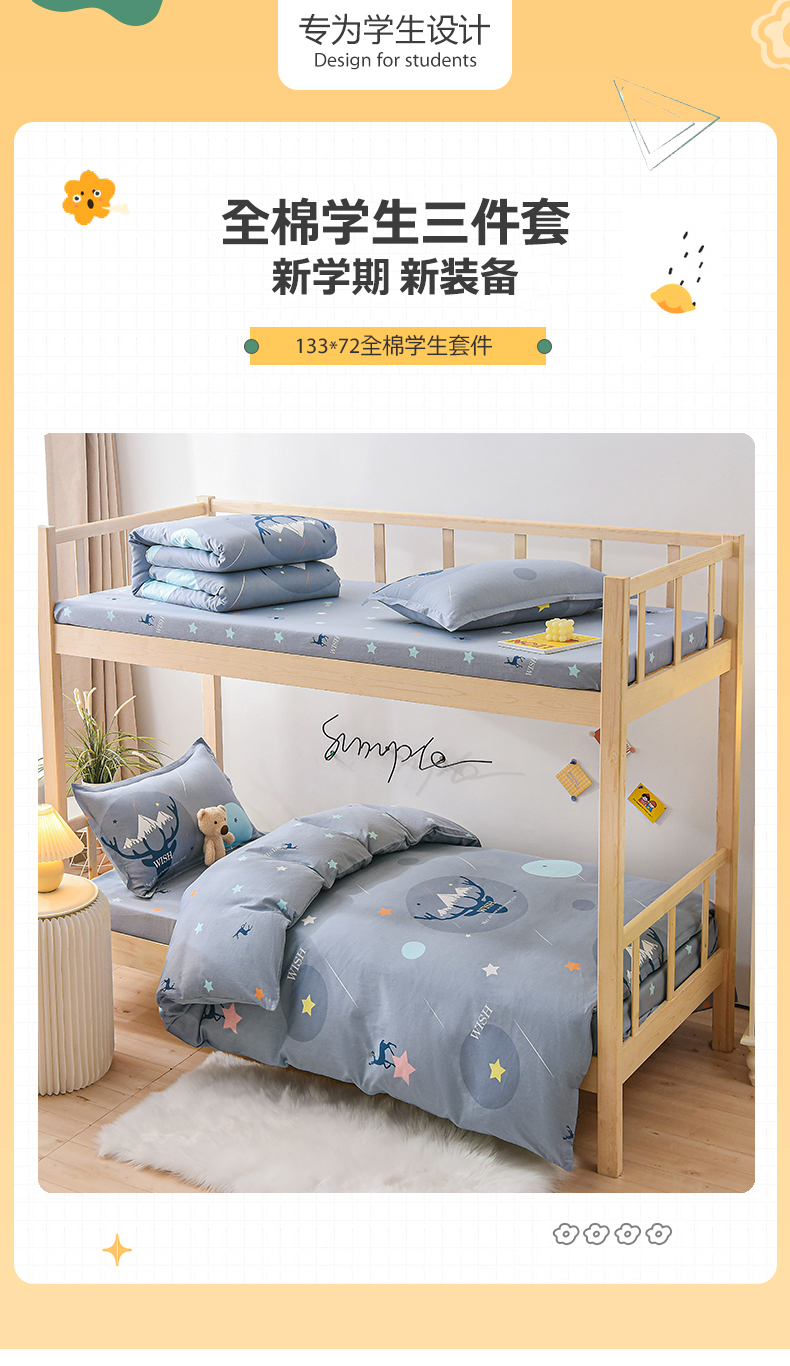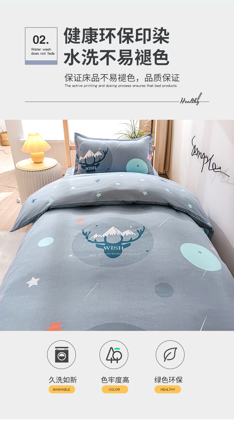 当前位置: 91家纺网 > 商品网购 > 床品套件 > 三件套 > 鑫宇 2025全棉13372床单款印花学生三件套 金鹿角-灰