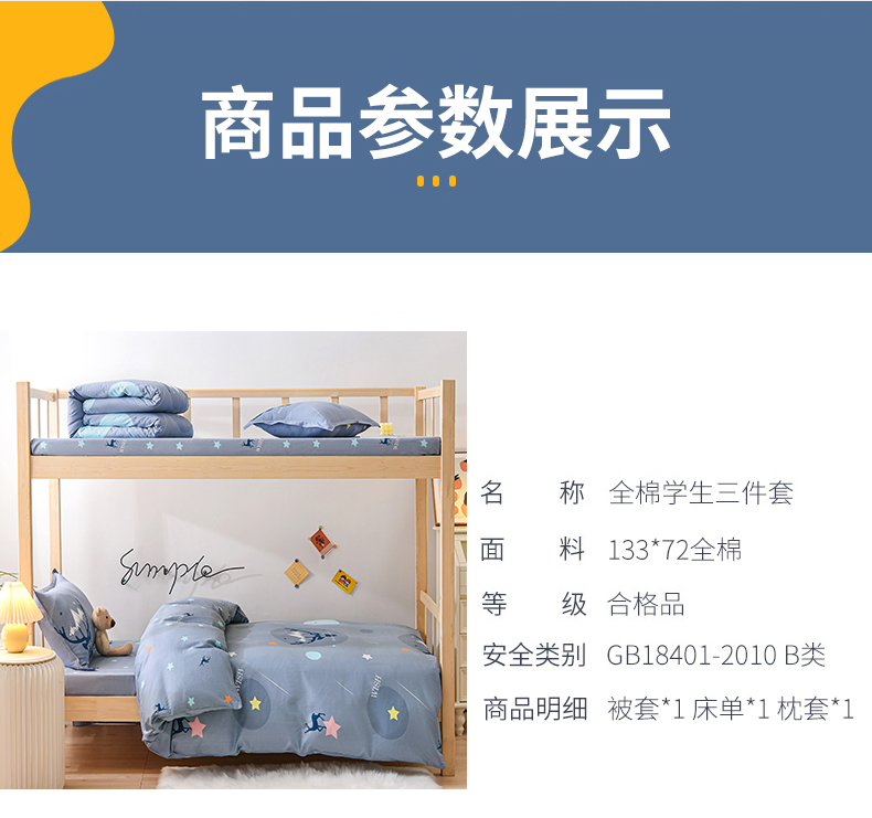 三件套+4斤棉花被+3斤棉花垫(90*200)+枕芯 | ¥153.00 |