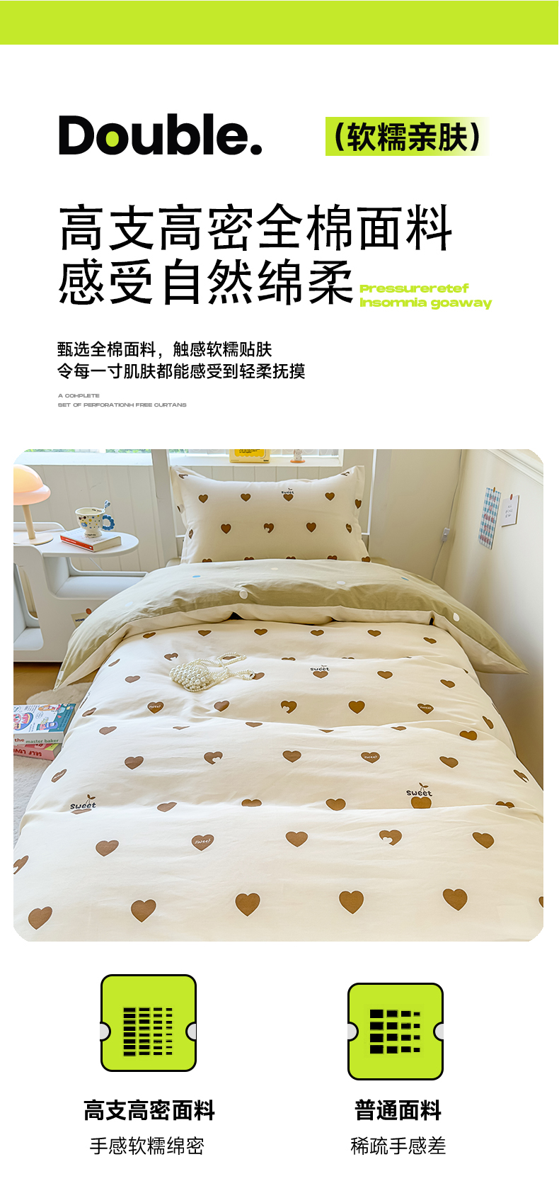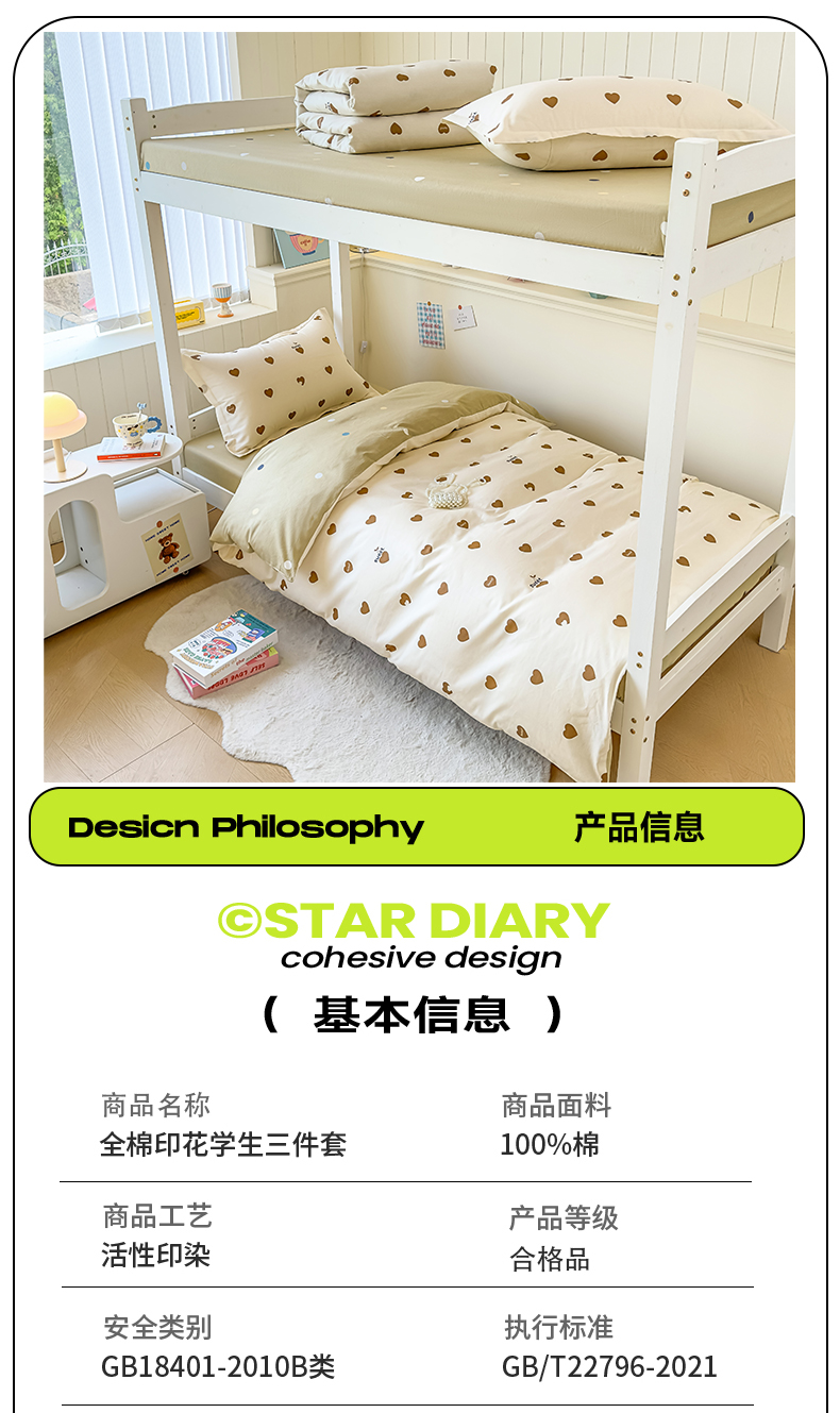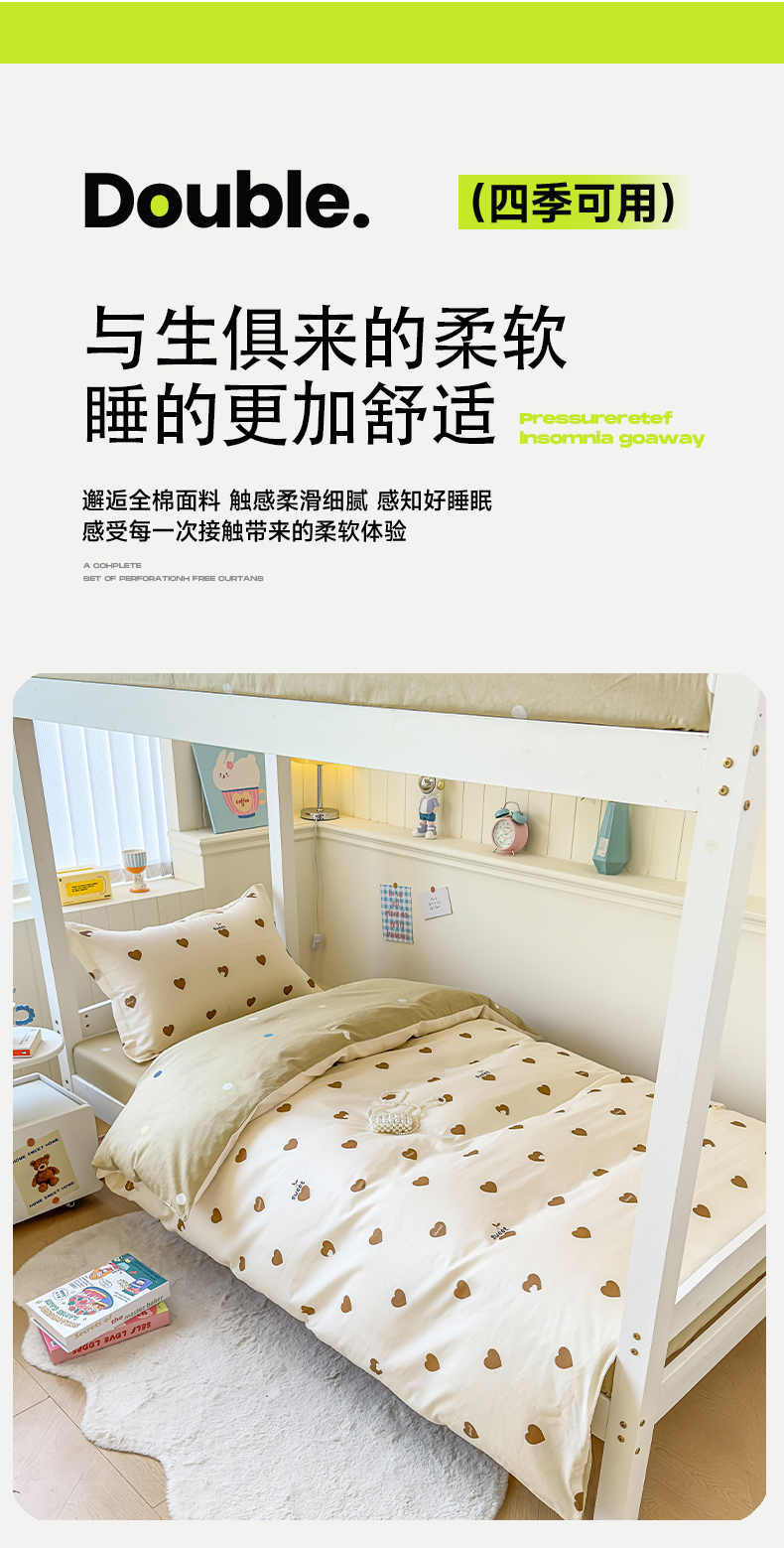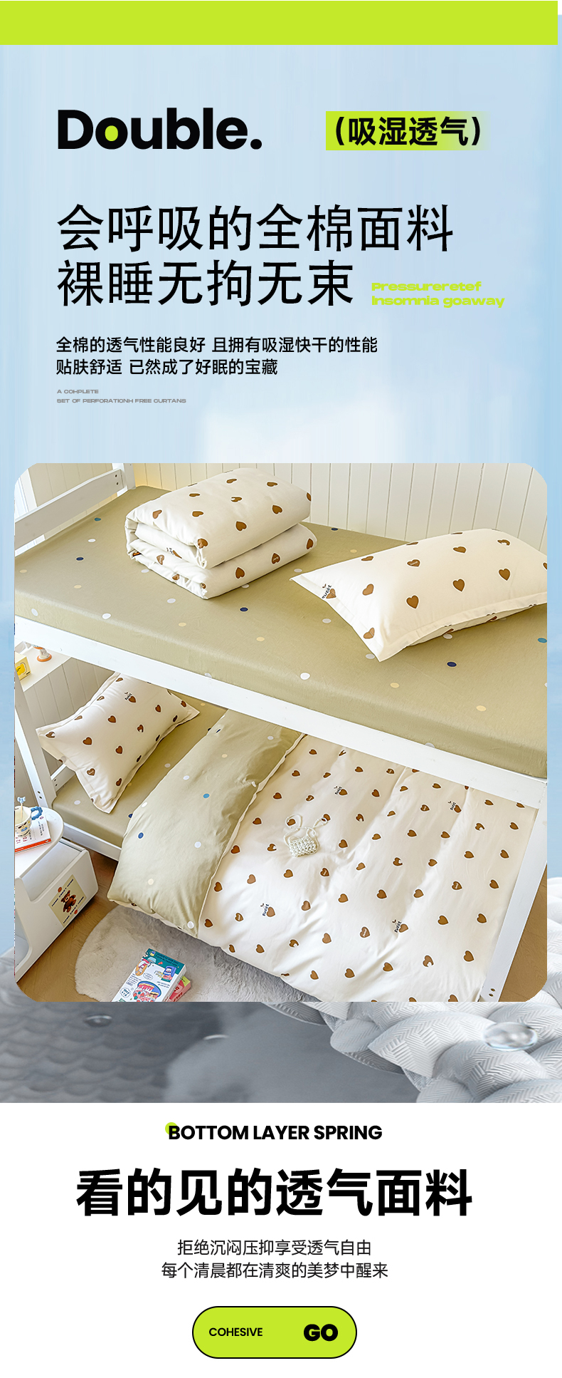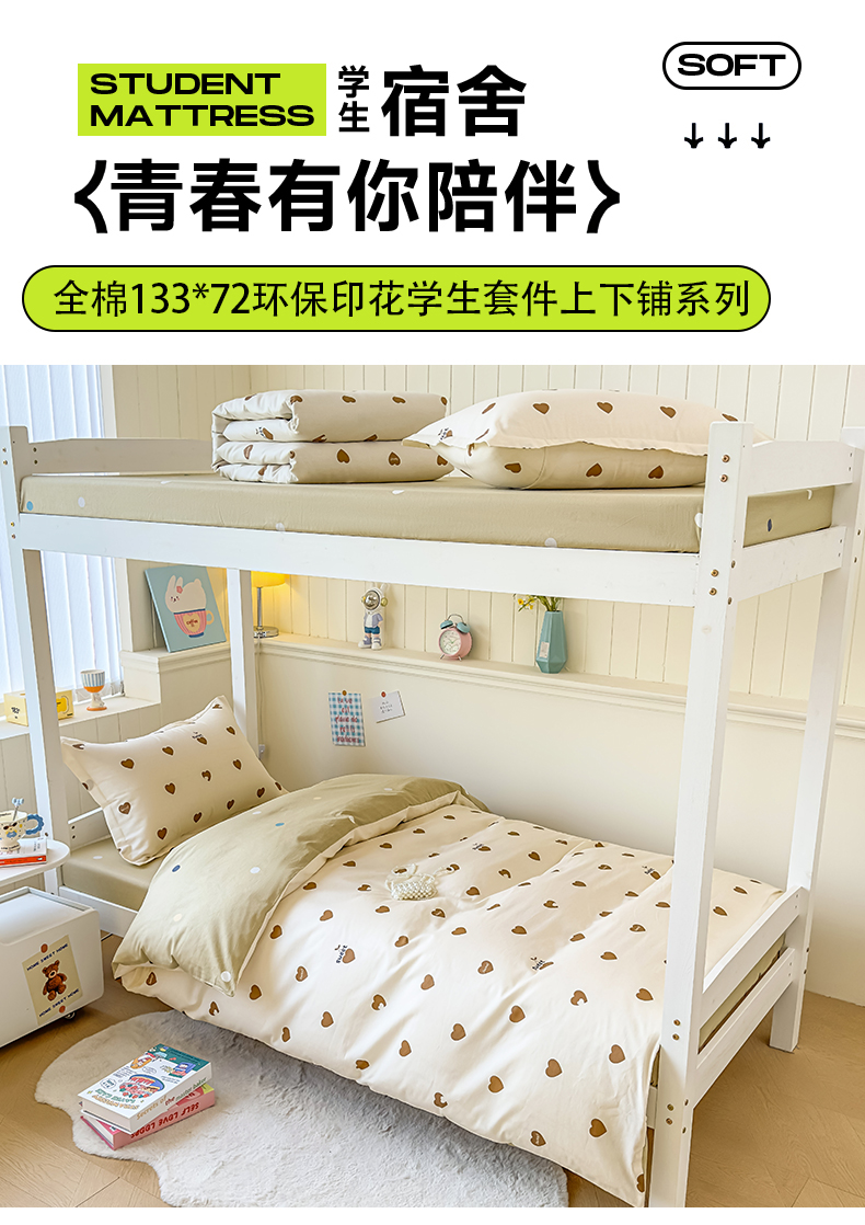 当前位置: 91家纺网 > 商品网购 > 床品套件 > 三件套 > 鑫宇 2025新款全棉纯棉13372宽幅学生上下铺三件套 点点爱