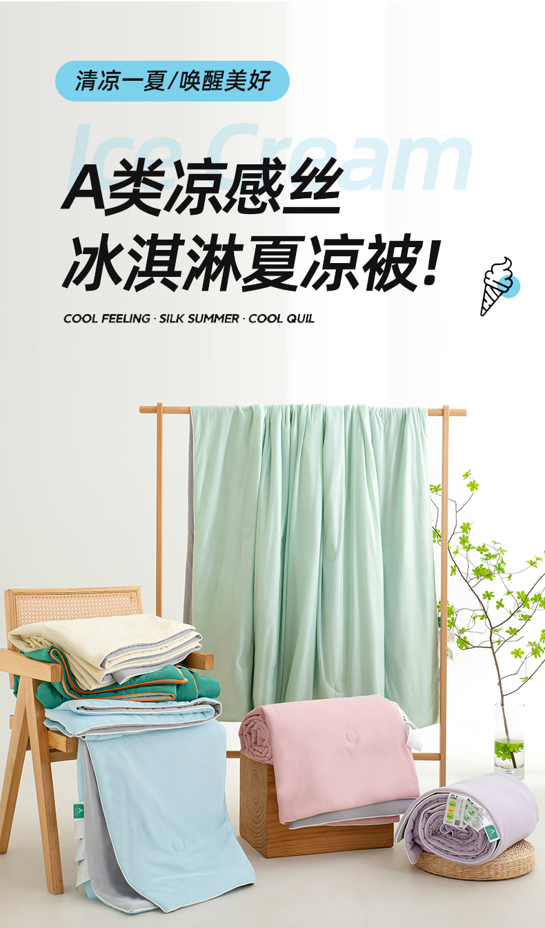商品名称:莱家富 2025新款A类云母凉感丝冰淇淋夏被天丝瓜瓜夏被夏凉被空调被 西瓜绿