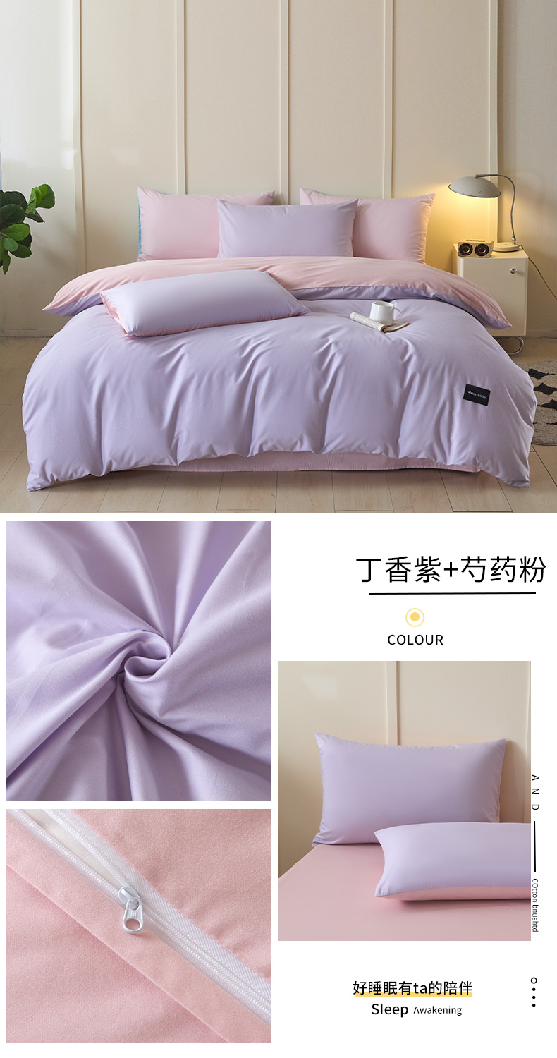 (总)乐美家纺 2026新款春夏新品全棉刺绣悦璟系列四件套,悦璟(丁香紫),悦璟(微微粉)