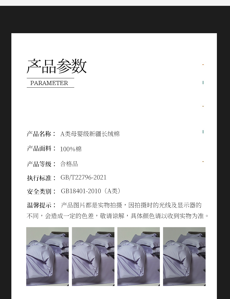 商品名称:柔觉家纺 柔系列A类100支单品被套 奶油紫
