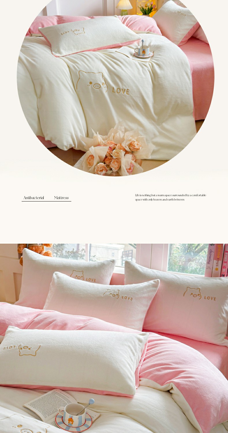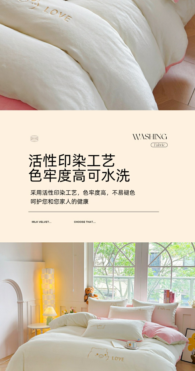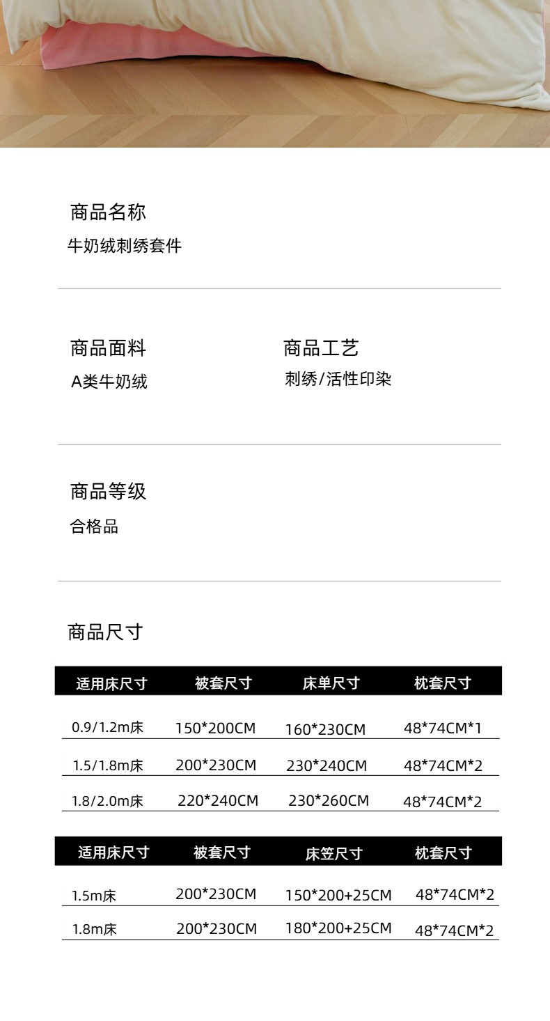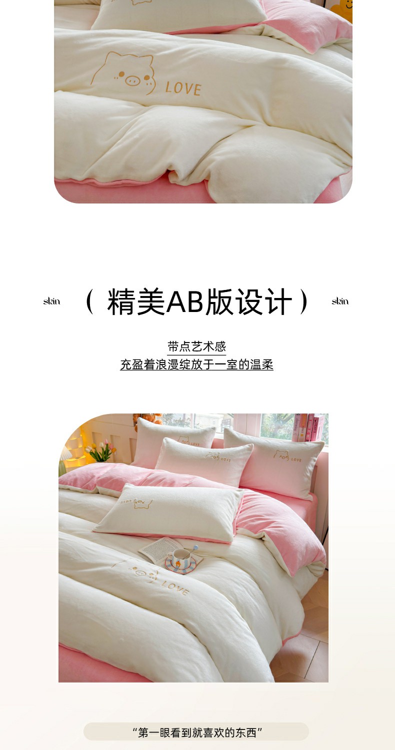 (总)梦恬佳 2025新款亲肤舒适牛奶绒刺绣四件套,杏+米咖,豆沙+太空灰,高级灰,高级灰+杏色,奶白+新芽绿,奶白+樱花粉