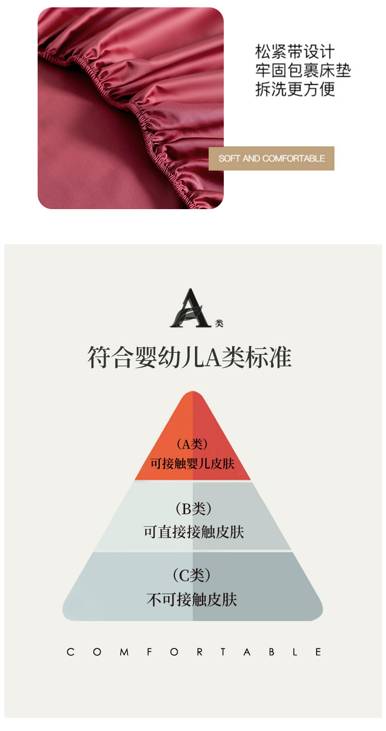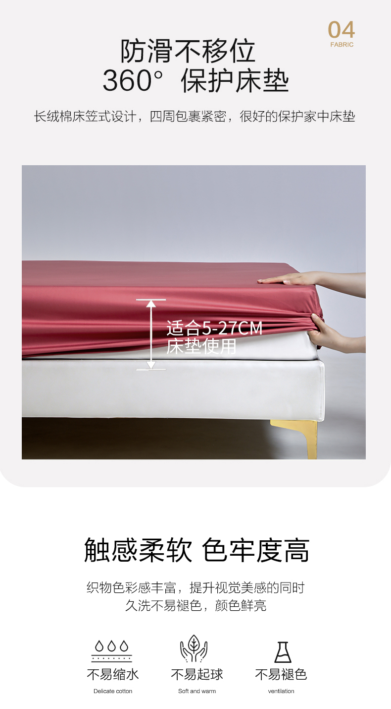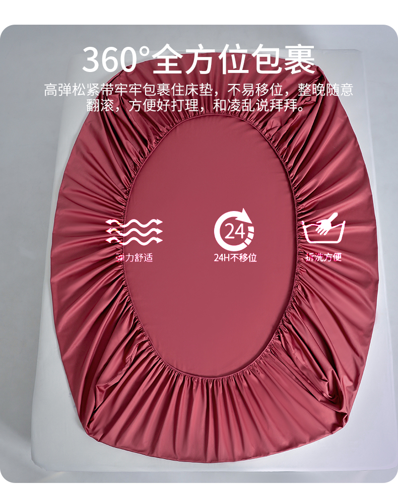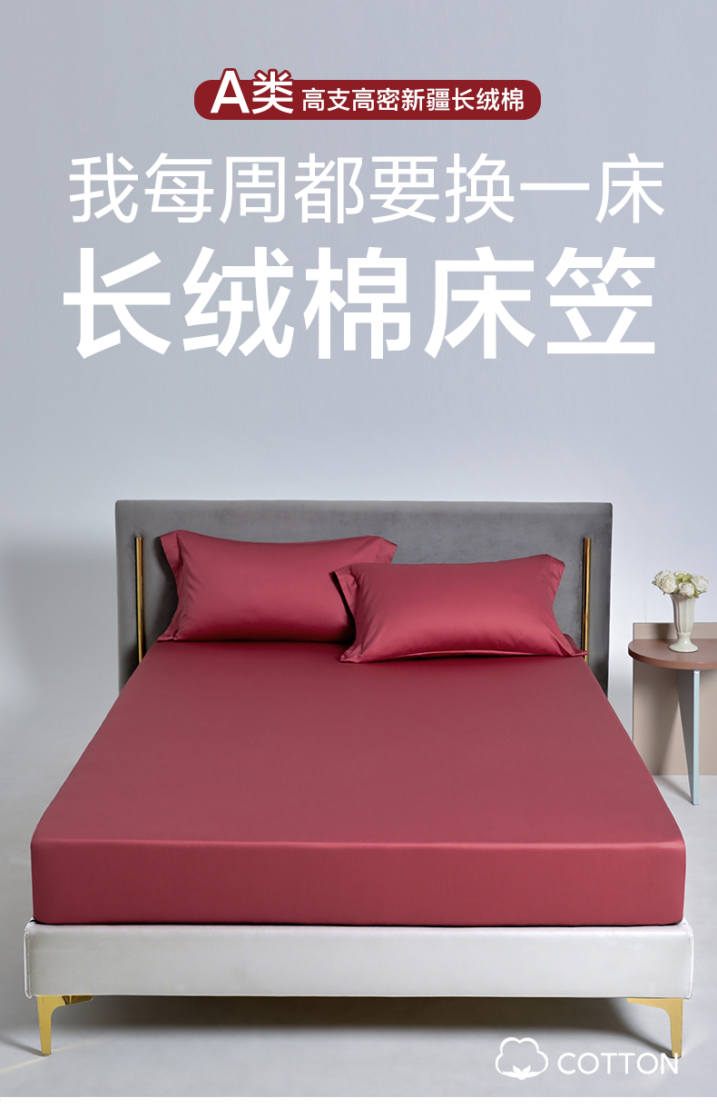 商品名称:柔觉家纺 柔系列A类100支单品床笠 胭脂红