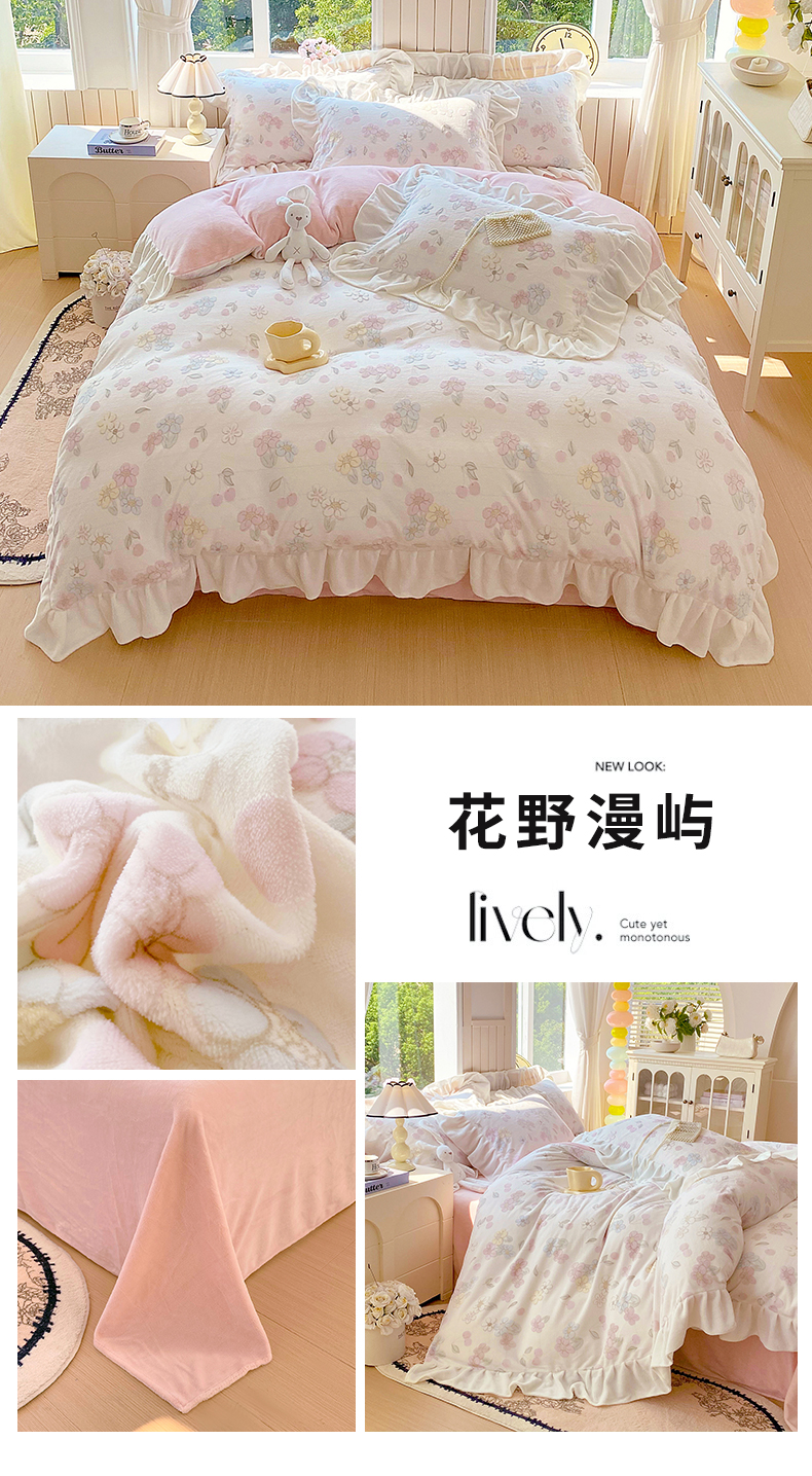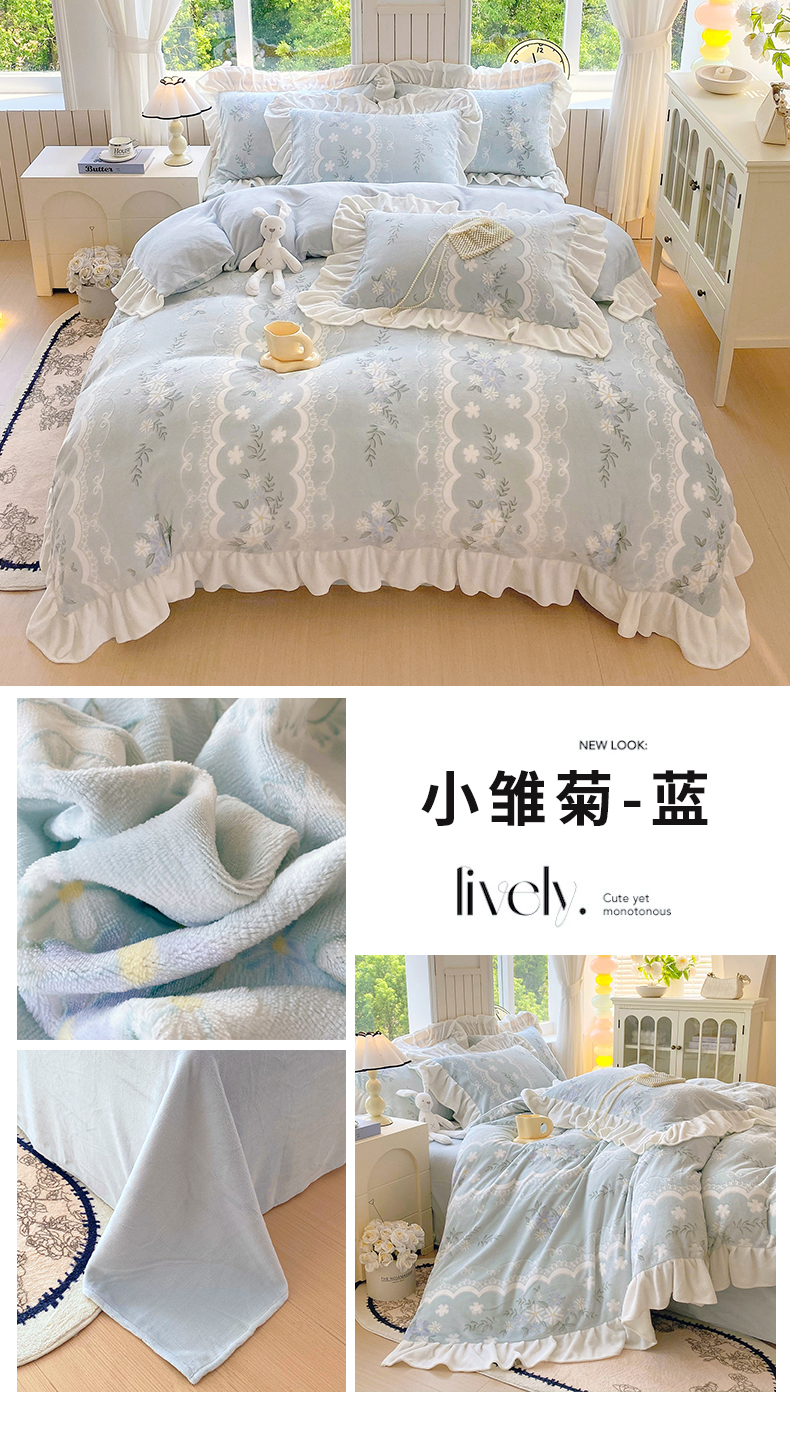 商品名称:启程家纺 2025新款花边雕花牛奶绒四件套 风信子-花边款