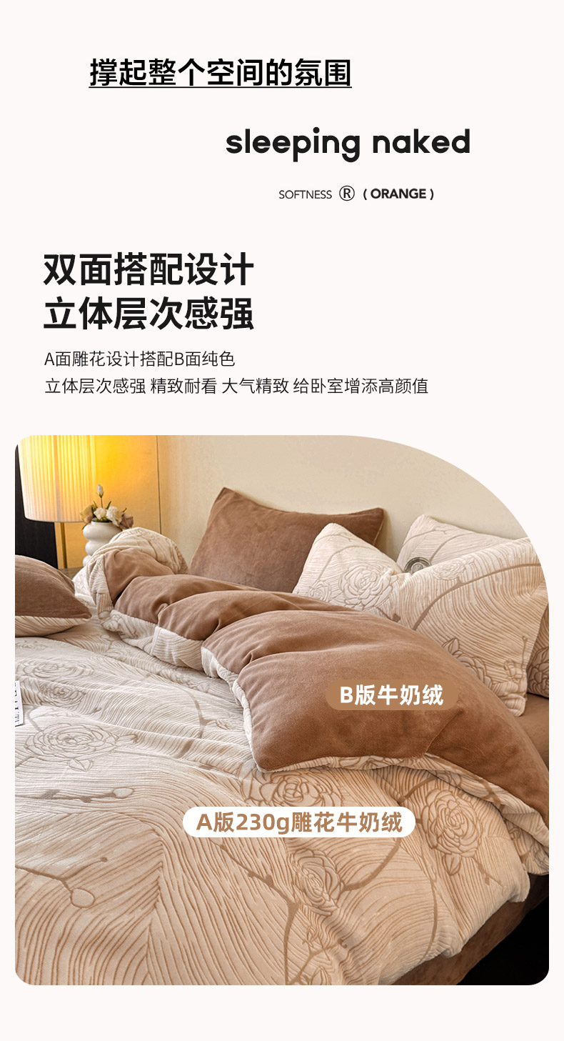 (总)吾秀家居 绒城 230克美拉德数码绒四件套 牛奶绒四件套 - 暖秋系列,花韵,暗香,冬日恋歌-咖,冬日恋歌-棕,冬日森林,花意浓,境玉森林,罗曼庄园,拿铁玫瑰,深紫罗兰,丝绒玫瑰,幽香花语