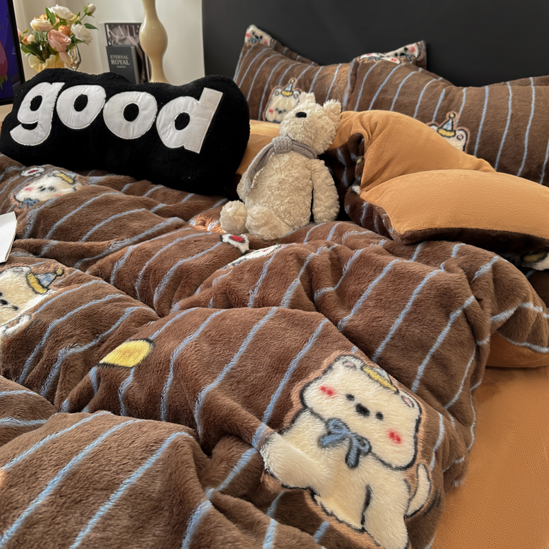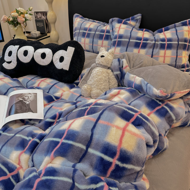 (总)仟网汇 2025新款兔毛绒印花四件套,斑马纹,可爱多,马格丽,魔法学院红,魔法学院蓝,晚秋,小淘气,英伦时尚