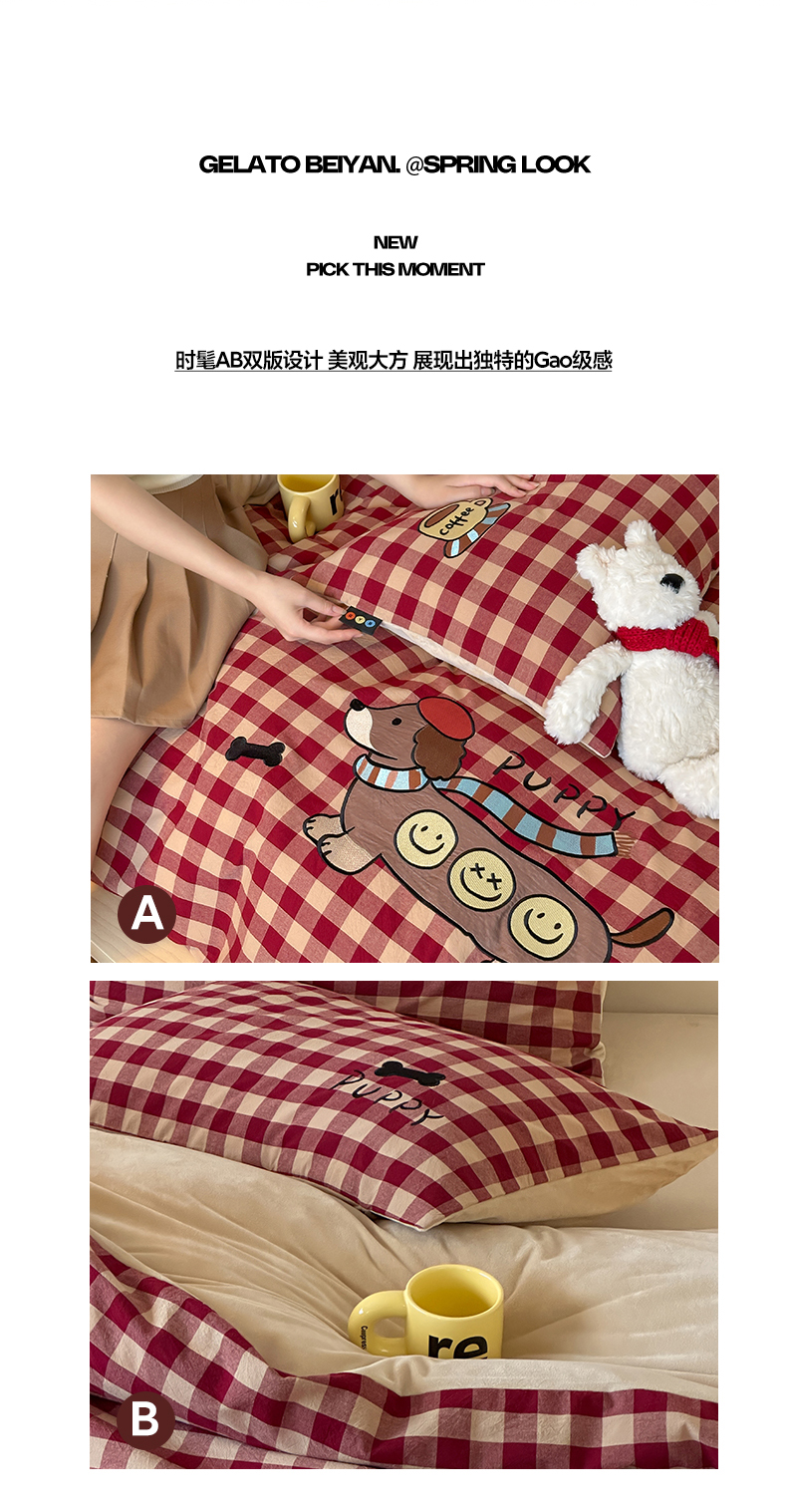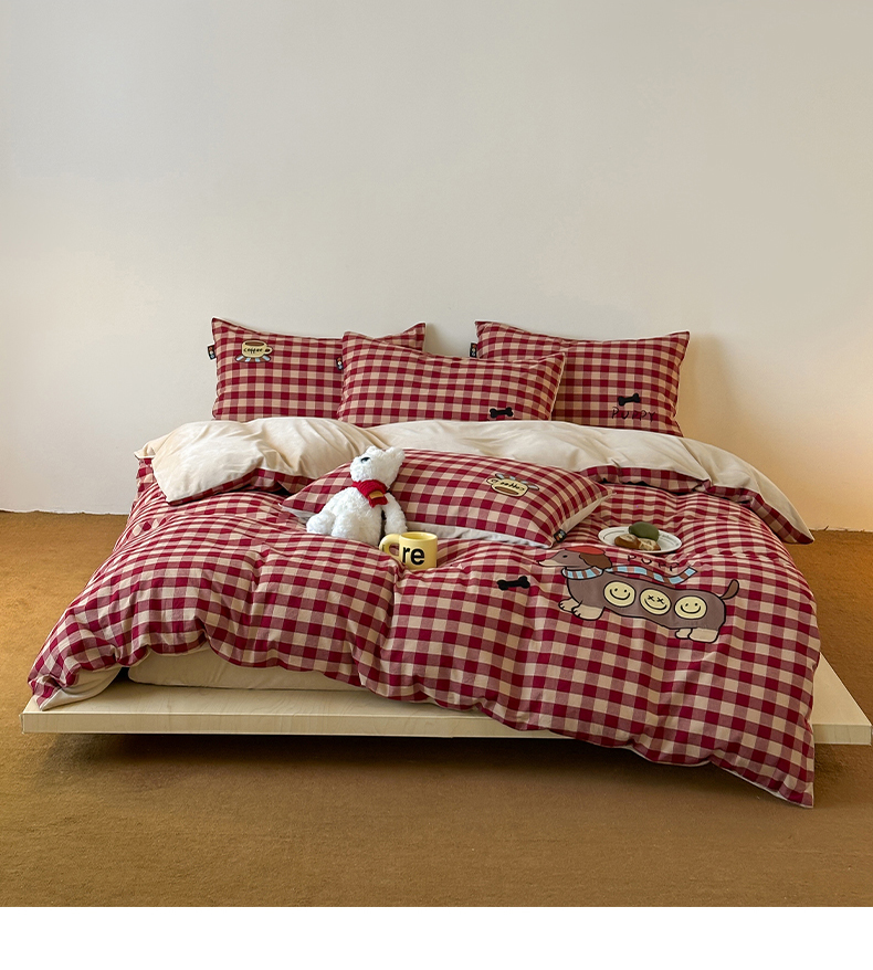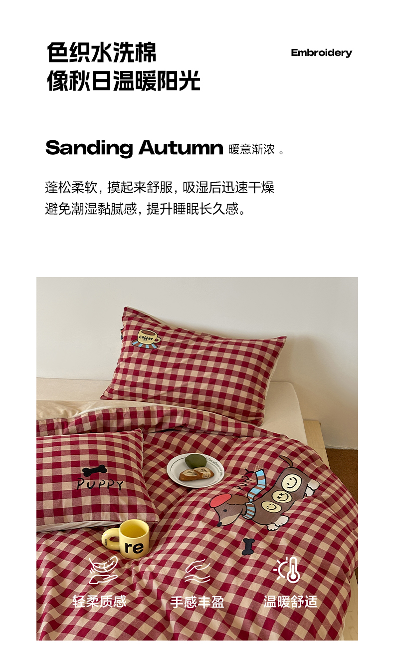 当前位置: 91家纺网 > 商品网购 > 床品套件 > 四件套 > 水洗棉四件套 > RYB红黄兰 2025新款设计师原创A面全棉色织水洗棉+B面婴儿绒贴布绣四件套 红格笑脸汪