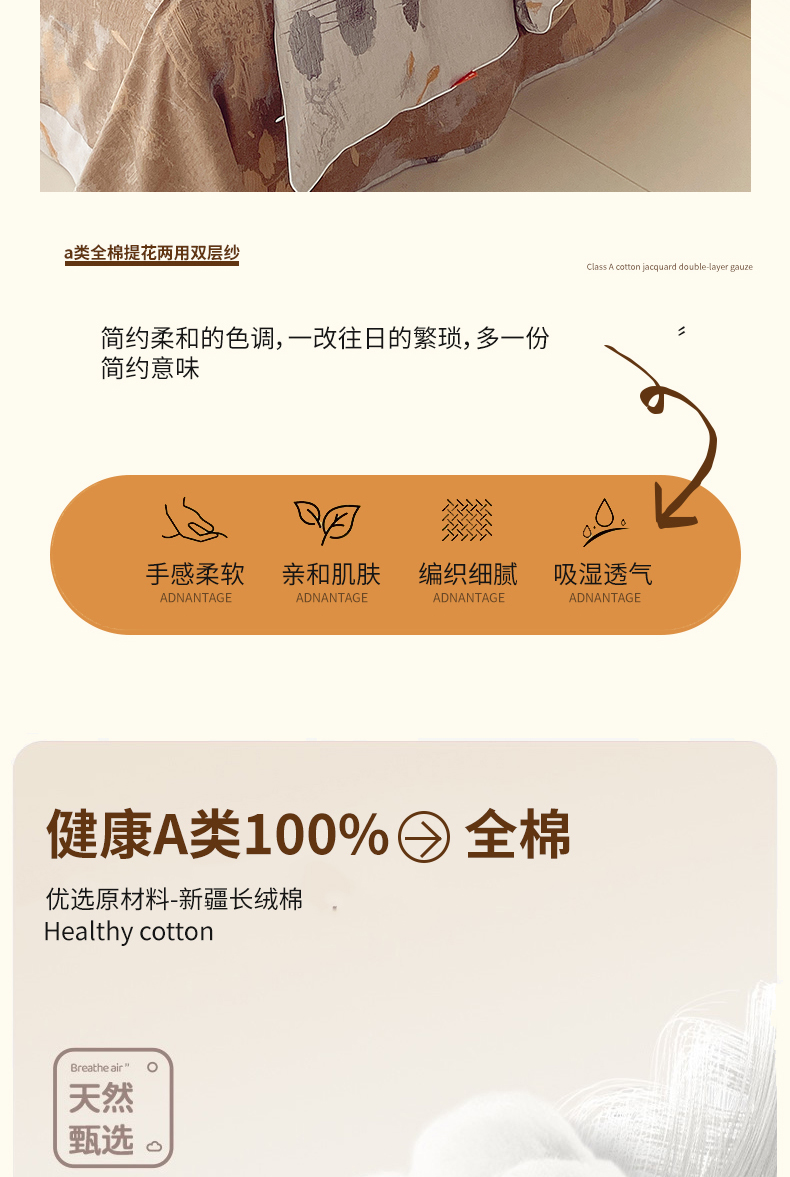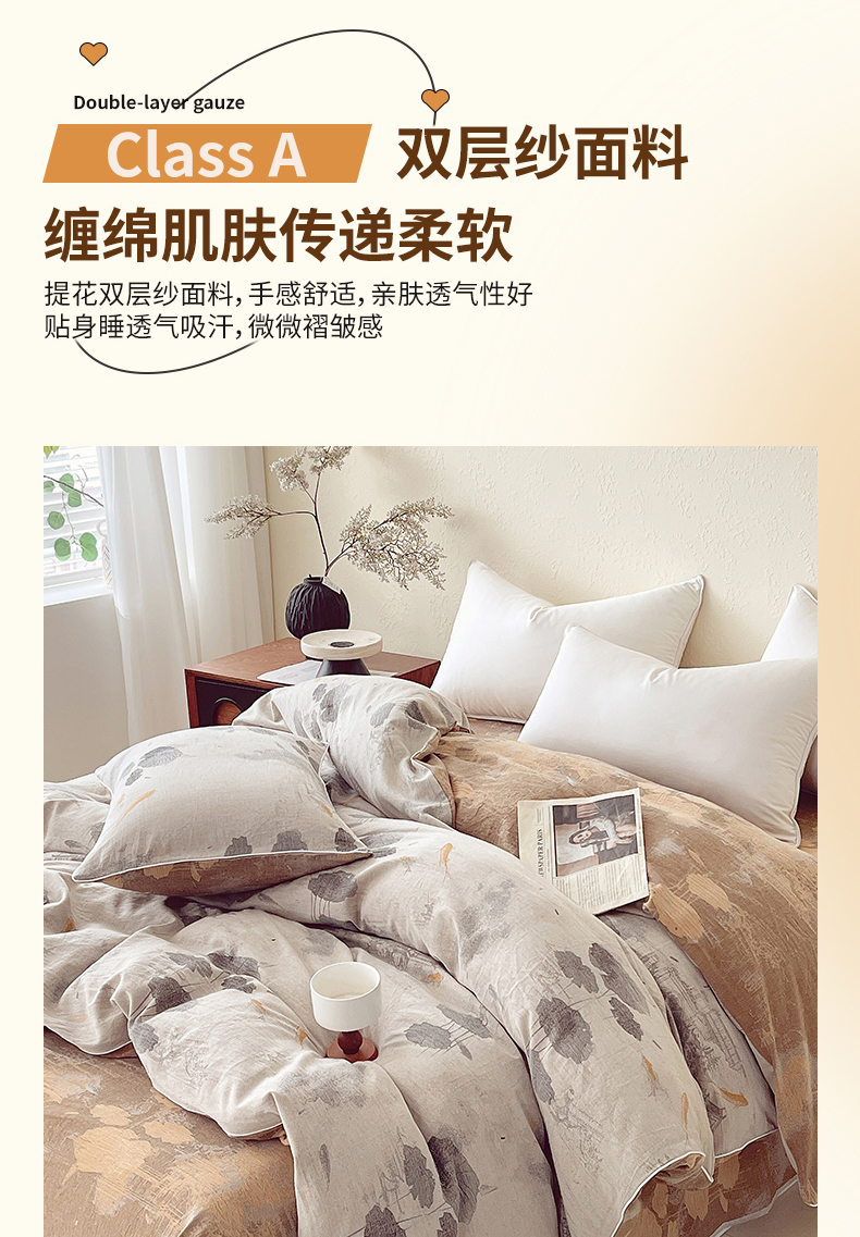 春皖家纺 2026春夏新款(正反两用)A类提花双层纱单被套 荷芷