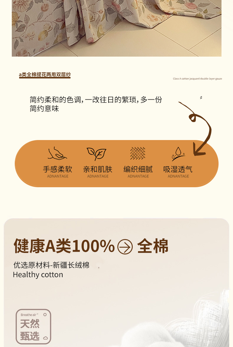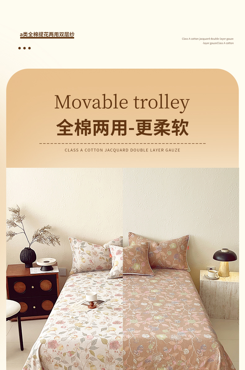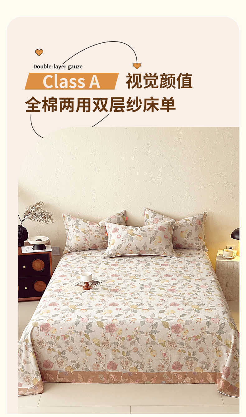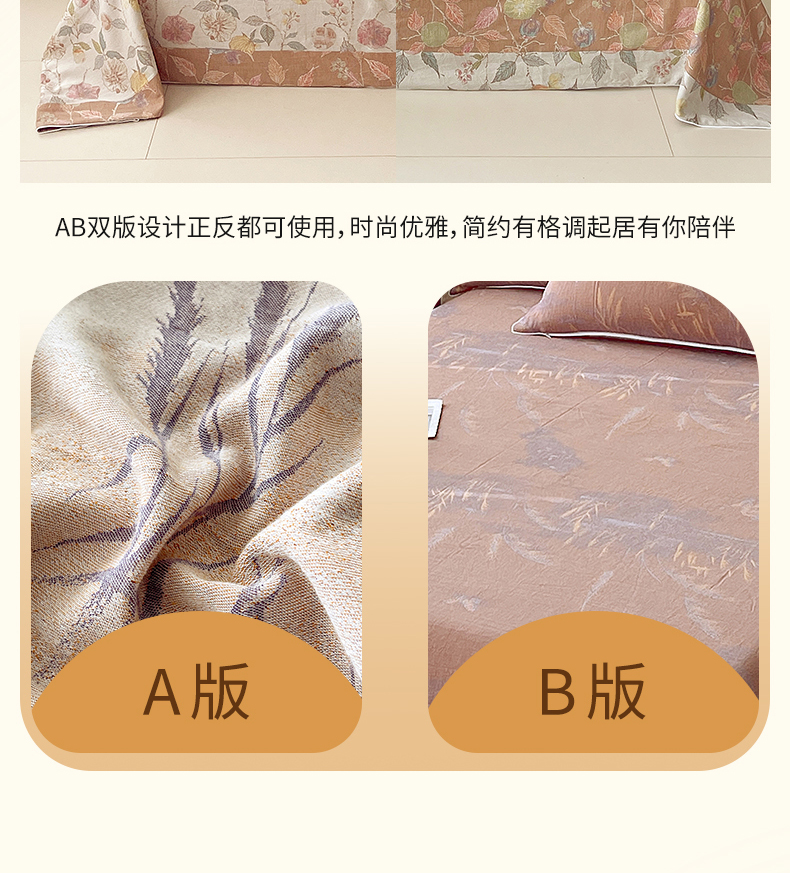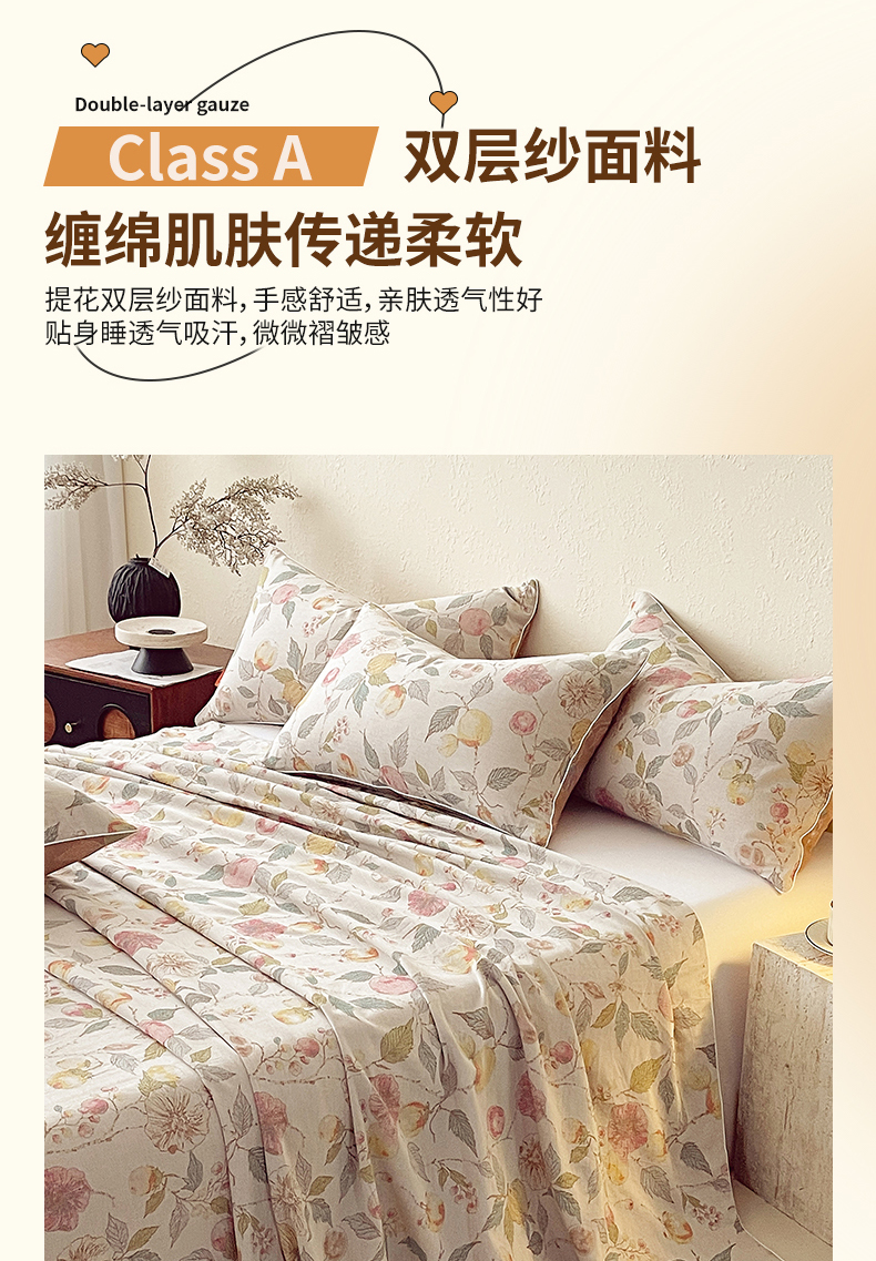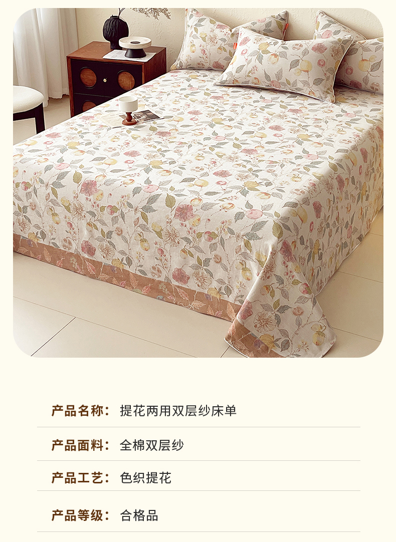 春皖家纺 2026春夏新款(正反两用)A类提花双层纱单床单 稔秋