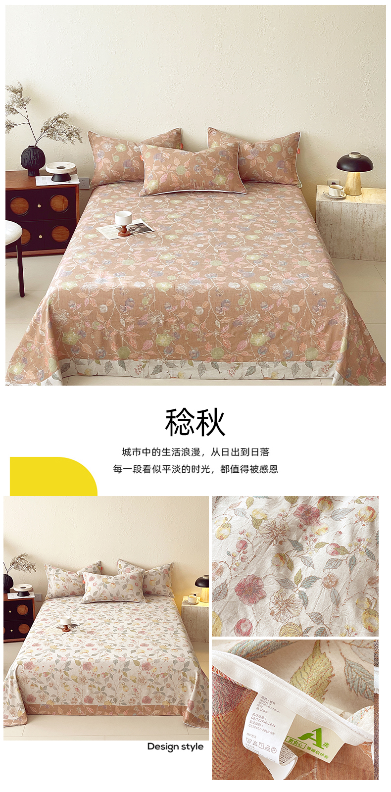 商品名称:春皖家纺 2026春夏新款(正反两用)A类提花双层纱单床单 稔秋