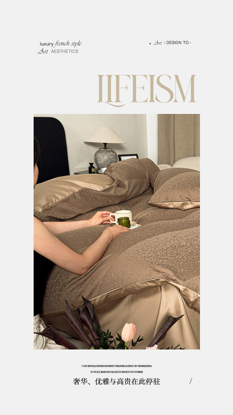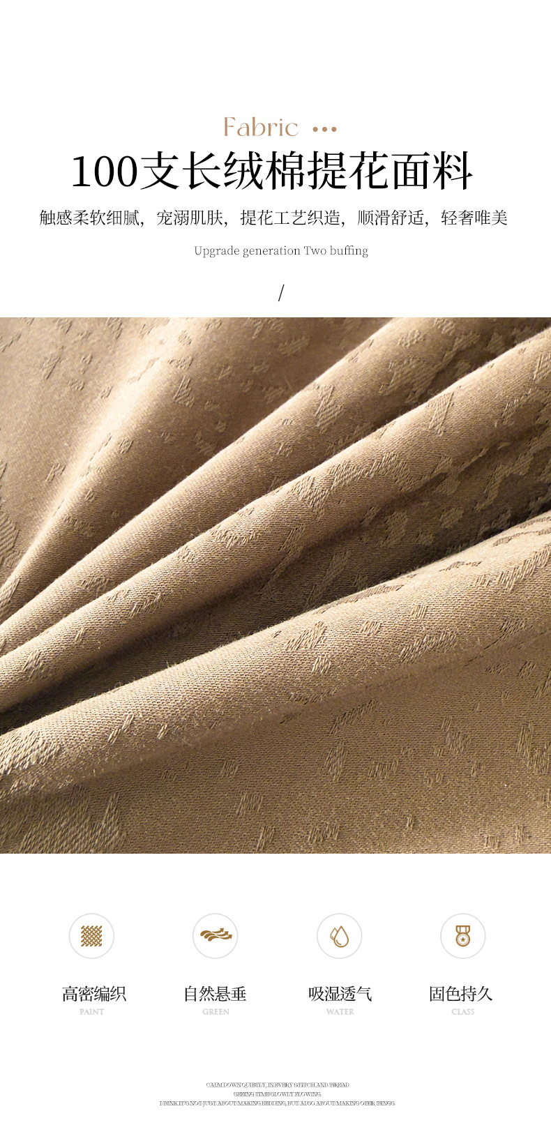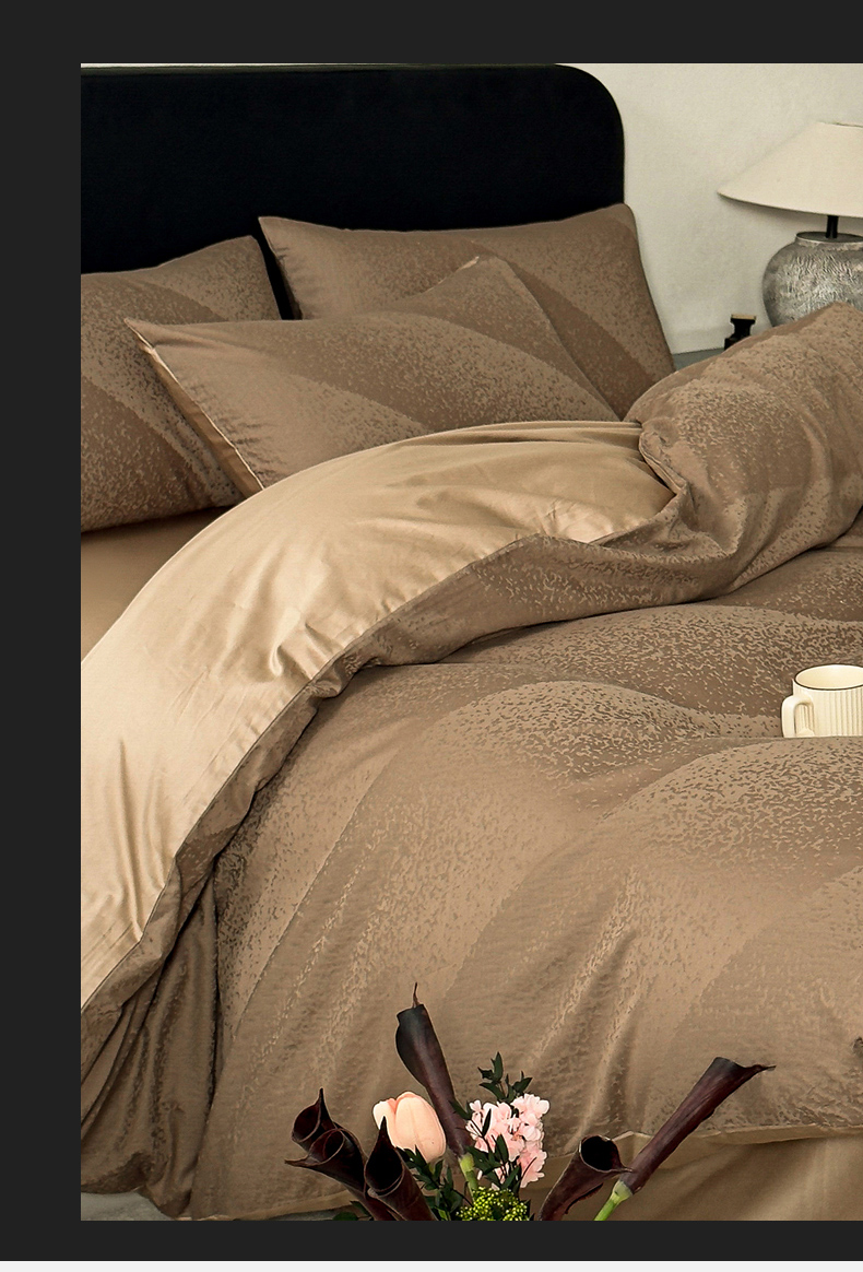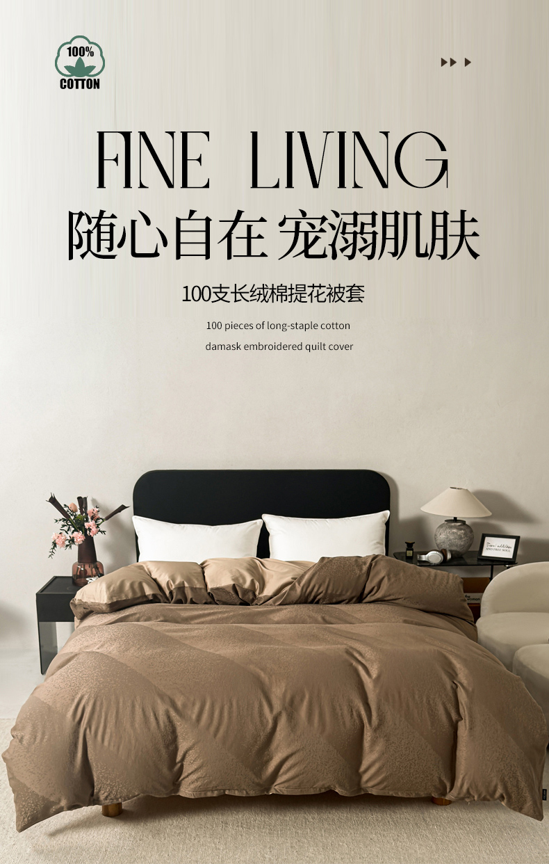 当前位置: 91家纺网 > 商品网购 > 床上用品 > 被套 > 富馨莱 2026新款100支长绒棉色织大提花四件套单品被套系列 爱庭-摩卡棕