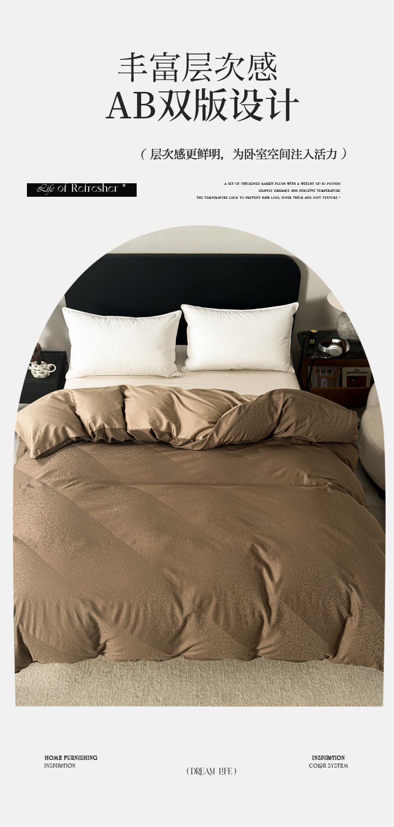 • 91家纺网 家纺一手货源 找家纺 富馨莱 2026新款100支长绒棉色织大提花四件套单品被套系列 爱庭-摩卡棕