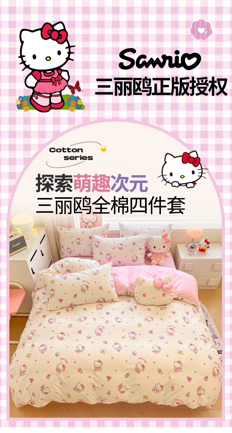 当前位置: 91家纺网 > 商品网购 > 床品套件 > 四件套 > 全棉普通四件套 > 暮思家居 2026新款正版授权三丽鸥全棉纯棉四件套系列-第二批 甜甜凯蒂