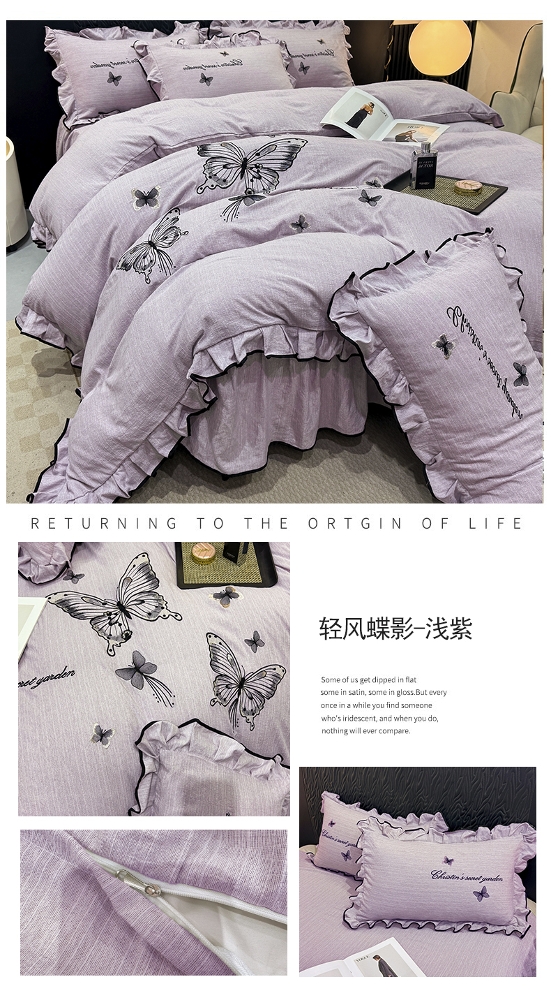 (总)艺玲家纺 2025新款韩版亲肤水洗棉刺绣花边床裙四件套,香香小姐-粉玉,香香小姐-米黄,香香小姐-浅绿,香香小姐-浅紫
