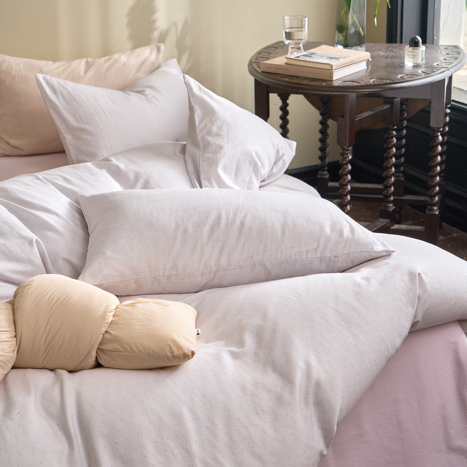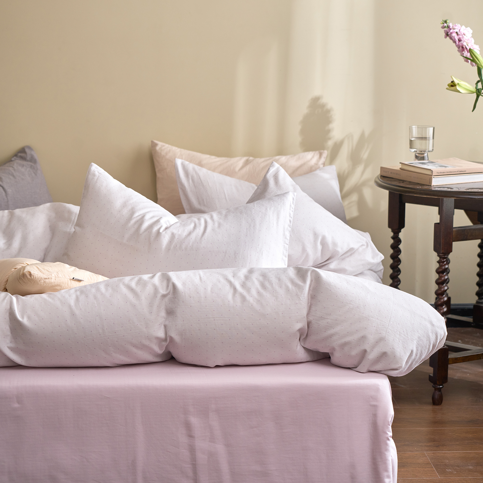 洋铭区(原狠狠爱) 2026春季新款简约全棉 无边双层纱 四件套系列 小紫点点