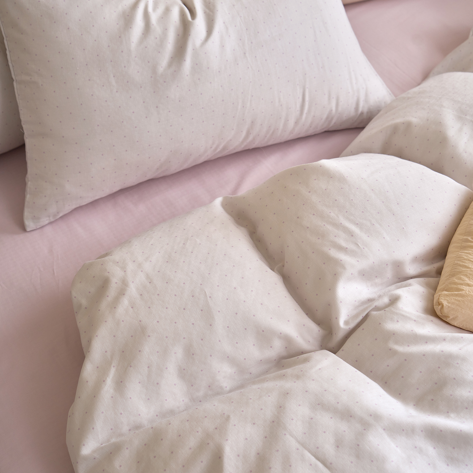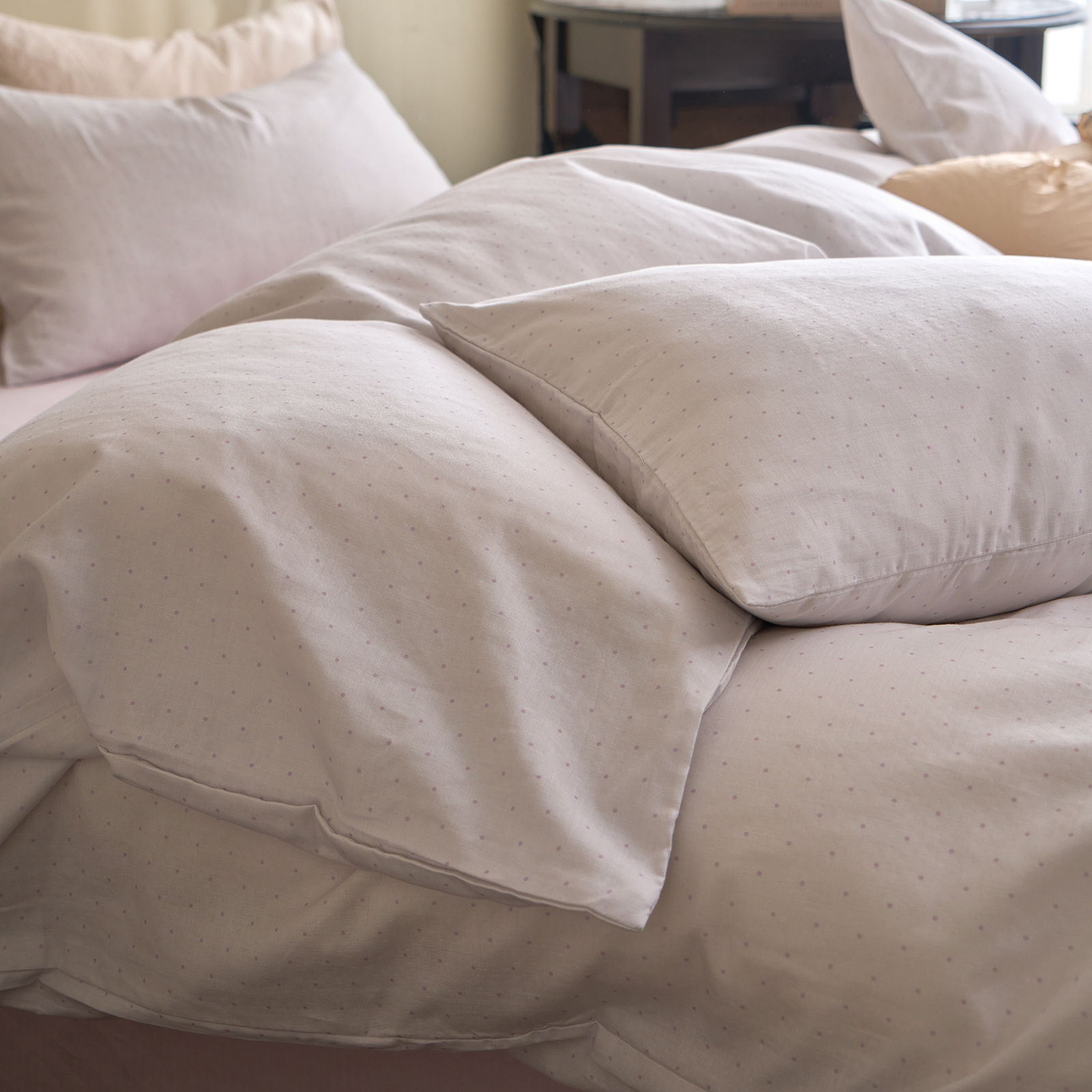 商品名称:洋铭区(原狠狠爱) 2026春季新款简约全棉 无边双层纱 四件套系列 小紫点点