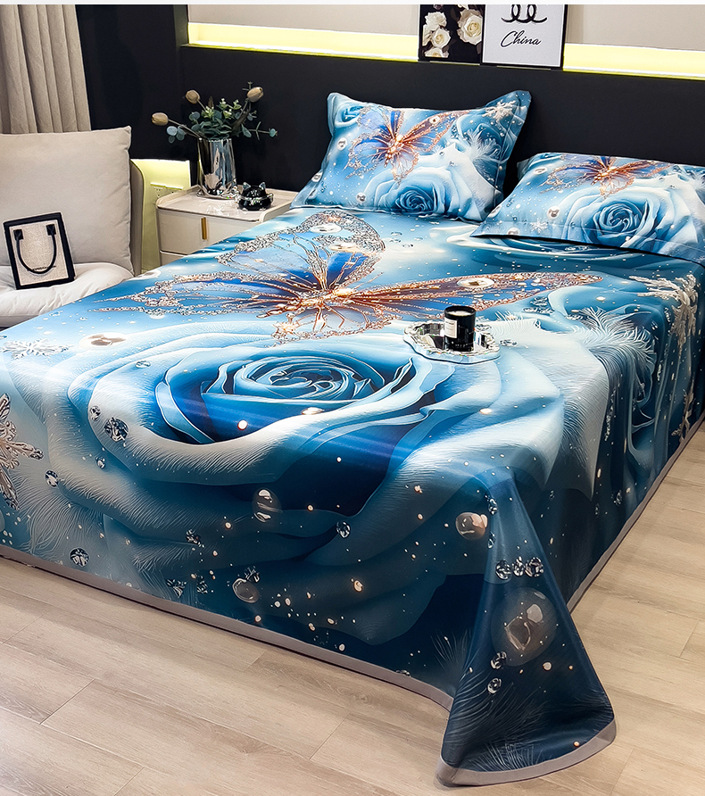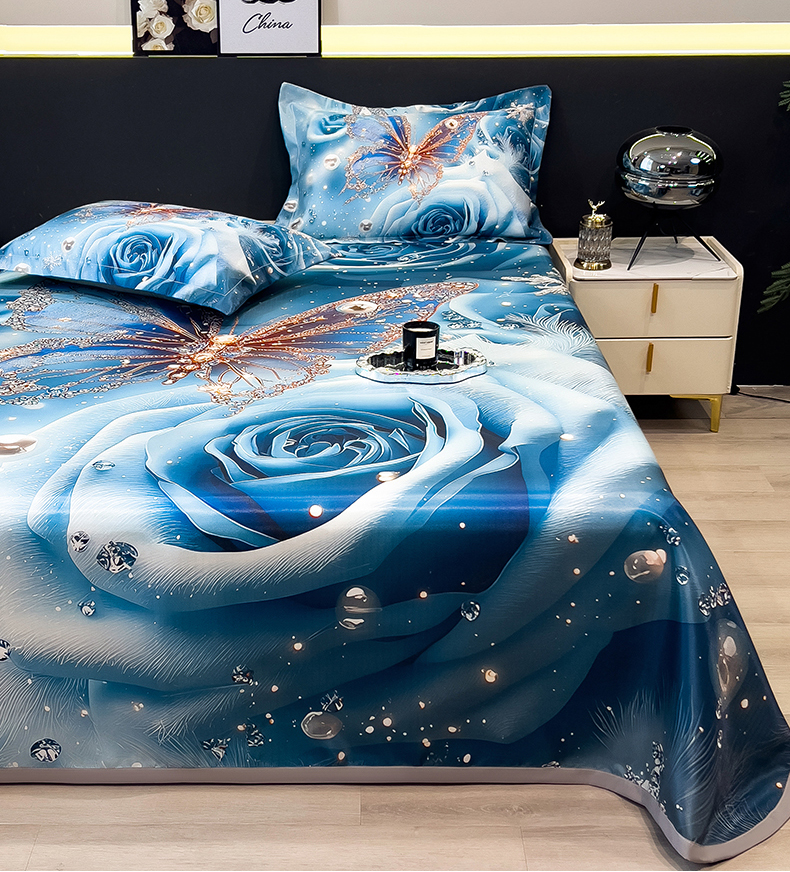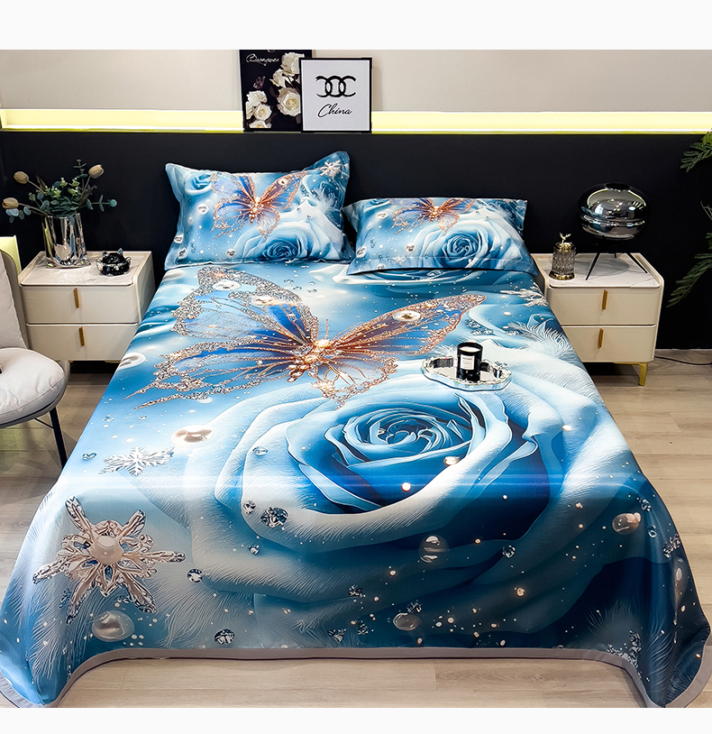 许林 2026新款冰丝凉席床单款凉席三件套-爱与蝶,爱与蝶