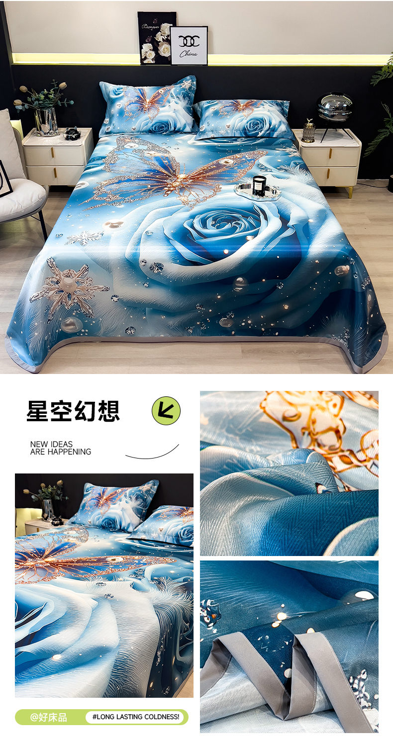 商品名称:许林家纺 2026爆款数码印花大版高克重冰丝凉席 星空幻想